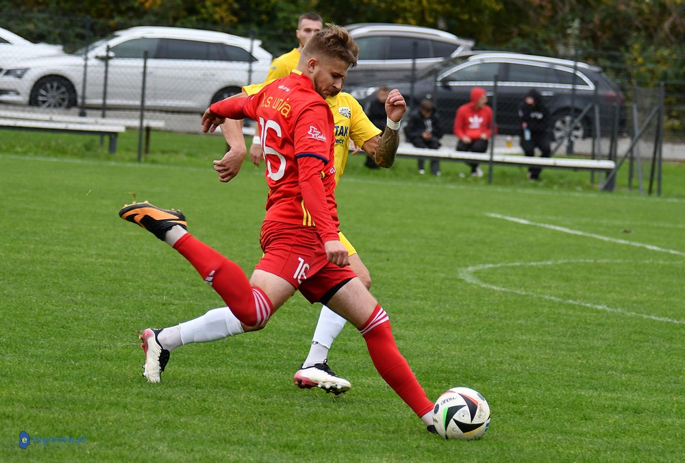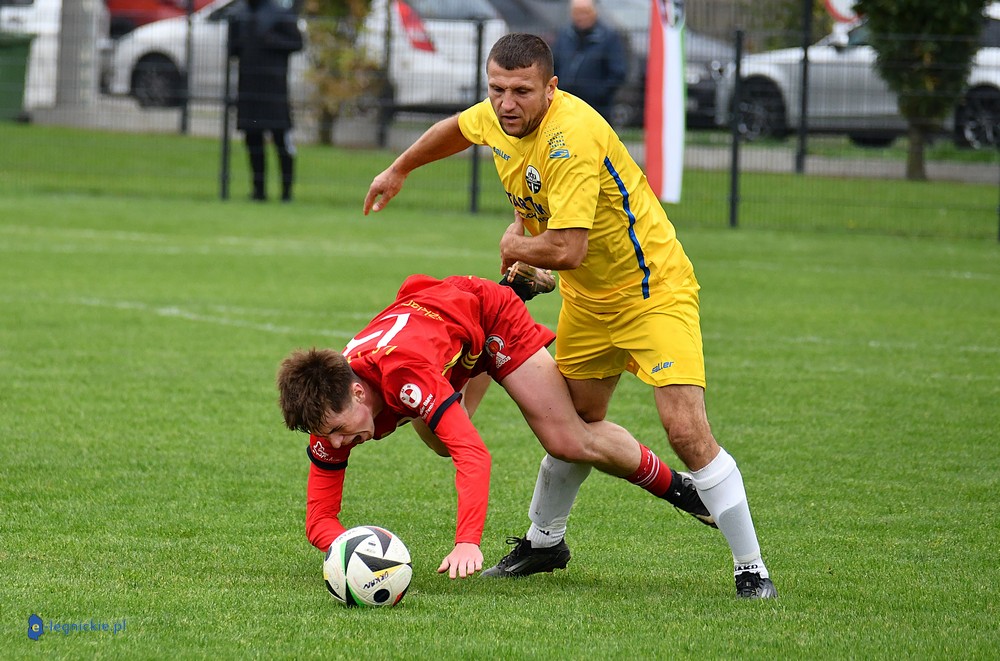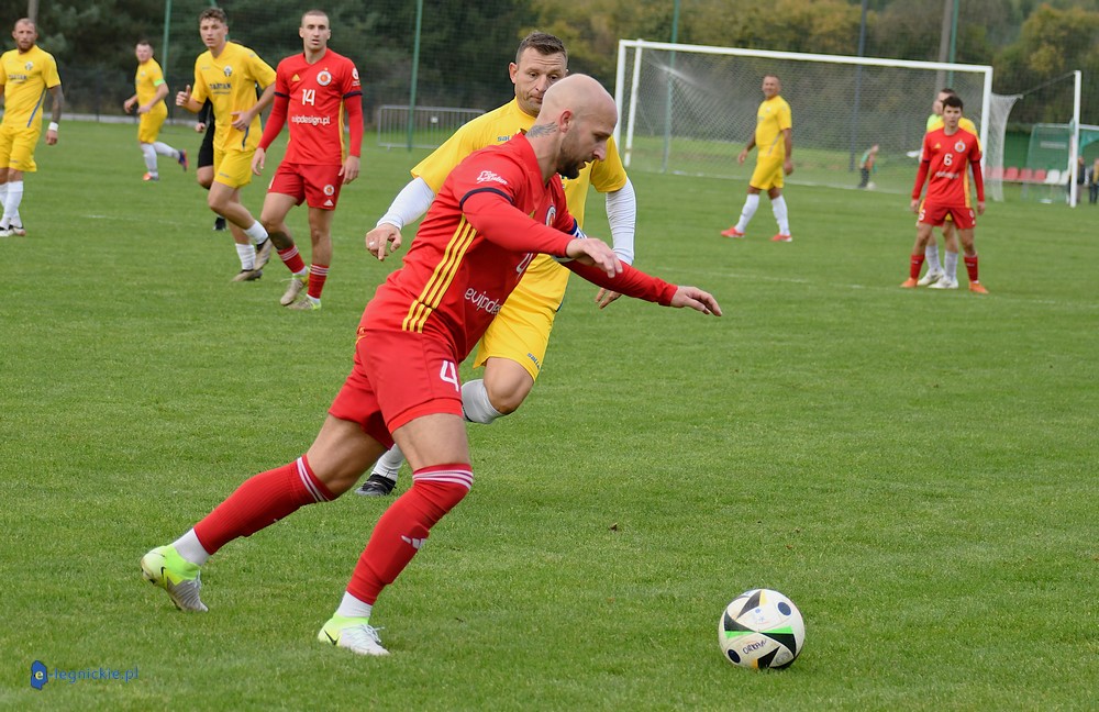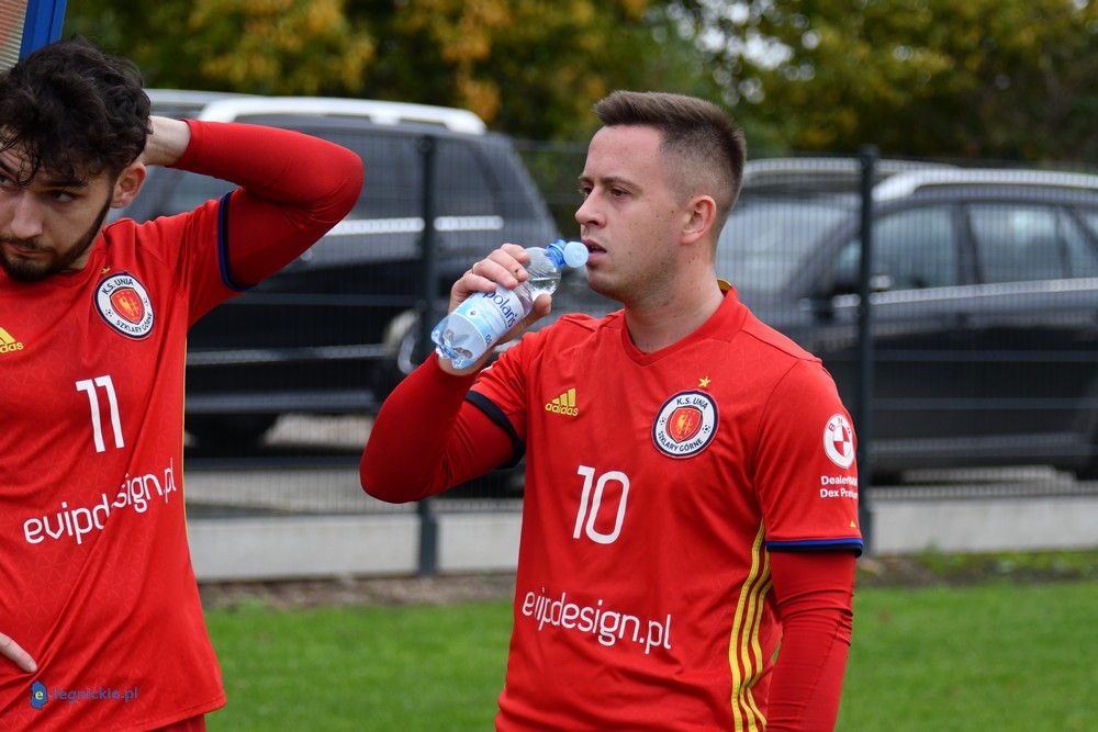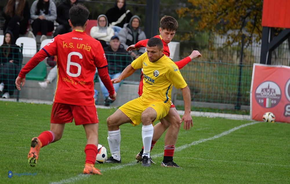 Daniel BALICKI, trener Unii Szklary Górne: - Generalnie obawialiśmy się tego meczu i sam przebieg meczu zwłaszcza w drugiej połowie pokazał, że Orkan dysponuje jakością w składzie. Do przerwy wyglądało to fajnie i z gry i wyniku. Niemniej uczulałem podopiecznych, że Orkan to nie jest przypadkowa drużyna i trzeba w drugiej części grać tak jakby było 0:0. W drugiej połowie cofnęliśmy się, może ciut za głęboko. Była to konsekwencja ofensywnej gry gospodarzy i my chcieliśmy ich skontrować. Udało się w 76 minucie kiedy to Łukasz Kozłowski praktycznie zamknął mecz. I jak to jest zazwyczaj : wygrywa się 9 meczów z rzędu i gdzieś z tyłu głowy pojawia się myśl o awansie. Ale uważam, że najpierw dokończmy rundę jesienną, a potem usiądziemy i postawimy sobie cel na rundę rewanżową. Oczywiście mamy personalnie kilka punktów w składzie bardzo mocnych jak Dominik PAZIO czy Łukasz KOZŁOWSKI. Pazio trzyma nam tyły. Ale mamy też fajnych młodych zawodników, którzy robią niesłychany progres . Mam na myśli Tomka Madeja czy Fabiana Berdysa. Ten drugi dzisiaj popisał się zresztą fantastyczną asystą. Michał PIECHUTA gra z nr 9 na koszulce i nie jest to przypadek. Na koncie ma chyba 20 goli strzelonych rywalom. Nie chcę teraz na gorąco analizować czy mamy skład na okręgówkę bo do niej droga jeszcze daleka. Na pewno 8 punktów przewagi na tę chwilę nad drugim lub raczej drugimi zespołami daje takie poczucie psychicznego komfortu. I nie ukrywam, że z tym komfortem gra się Unii lepiej.