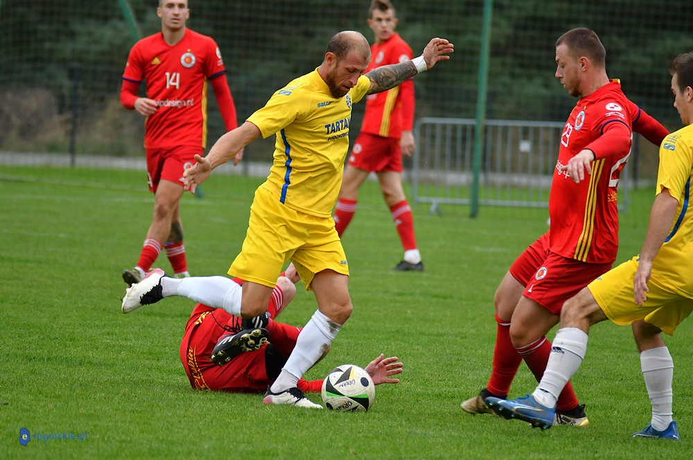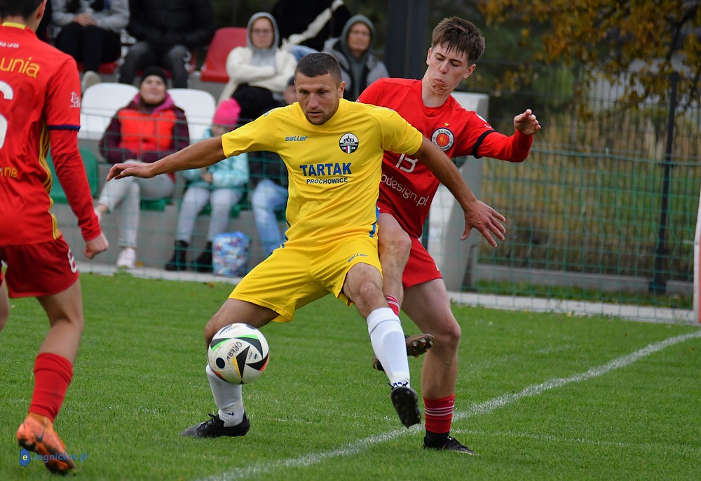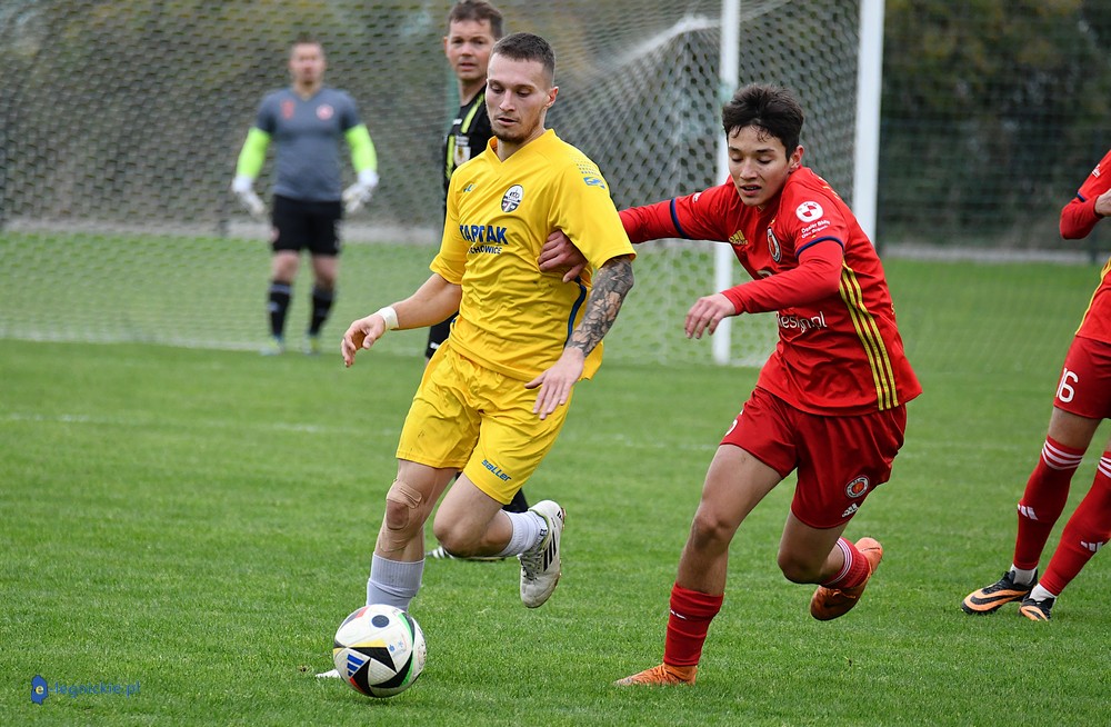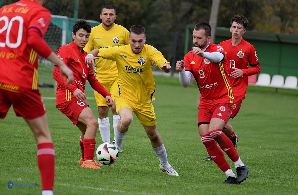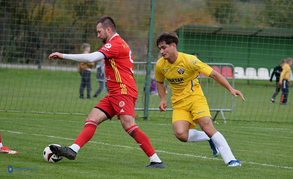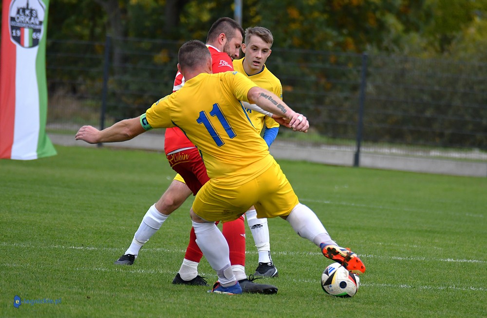 Daniel BALICKI, trener Unii Szklary Górne: - Generalnie obawialiśmy się tego meczu i sam przebieg meczu zwłaszcza w drugiej połowie pokazał, że Orkan dysponuje jakością w składzie. Do przerwy wyglądało to fajnie i z gry i wyniku. Niemniej uczulałem podopiecznych, że Orkan to nie jest przypadkowa drużyna i trzeba w drugiej części grać tak jakby było 0:0. W drugiej połowie cofnęliśmy się, może ciut za głęboko. Była to konsekwencja ofensywnej gry gospodarzy i my chcieliśmy ich skontrować. Udało się w 76 minucie kiedy to Łukasz Kozłowski praktycznie zamknął mecz. I jak to jest zazwyczaj : wygrywa się 9 meczów z rzędu i gdzieś z tyłu głowy pojawia się myśl o awansie. Ale uważam, że najpierw dokończmy rundę jesienną, a potem usiądziemy i postawimy sobie cel na rundę rewanżową. Oczywiście mamy personalnie kilka punktów w składzie bardzo mocnych jak Dominik PAZIO czy Łukasz KOZŁOWSKI. Pazio trzyma nam tyły. Ale mamy też fajnych młodych zawodników, którzy robią niesłychany progres . Mam na myśli Tomka Madeja czy Fabiana Berdysa. Ten drugi dzisiaj popisał się zresztą fantastyczną asystą. Michał PIECHUTA gra z nr 9 na koszulce i nie jest to przypadek. Na koncie ma chyba 20 goli strzelonych rywalom. Nie chcę teraz na gorąco analizować czy mamy skład na okręgówkę bo do niej droga jeszcze daleka. Na pewno 8 punktów przewagi na tę chwilę nad drugim lub raczej drugimi zespołami daje takie poczucie psychicznego komfortu. I nie ukrywam, że z tym komfortem gra się Unii lepiej.