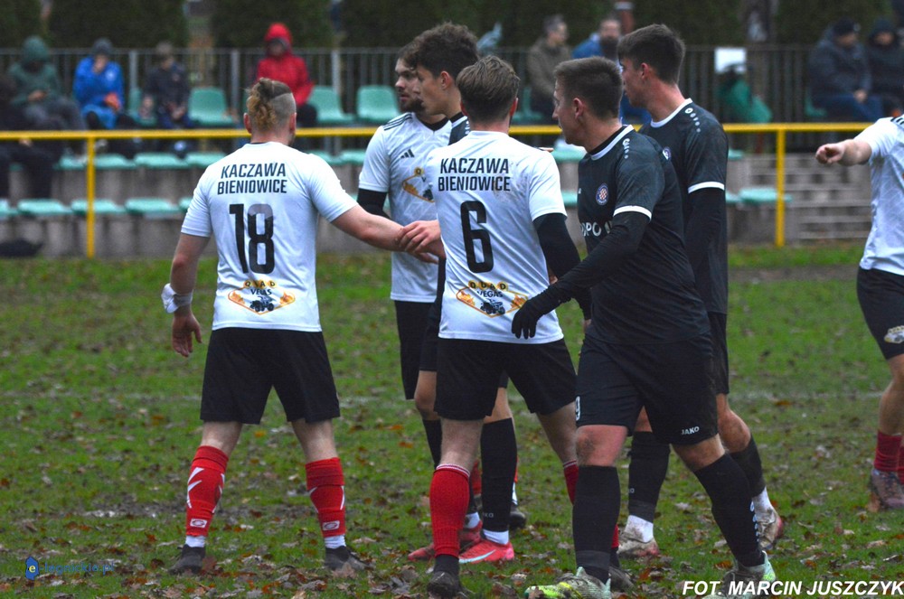 BIENIOWICE. W sobotnie popołudnie w Bieniowicach miejscowa Kaczawa podejmowała Jaworzankę 1946 Jawor. Obie drużyny dzieli w ligowej tabeli sporo – gospodarze znajdują się w strefie spadkowej, a goście plasują się w TOP5 i gonią ligowe podium. Jaworzanie wywiązali się z roli faworyta, wygrywając 3:2. Jednak niespodzianka była o krok, bowiem bieniowiczanie w 90. minucie… wciąż prowadzili!