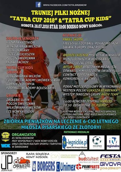 NOWY KOŚCIÓŁ. Już jutro czeka nas masa futbolowych emocji spowodowanych szóstą edycją turnieju Tatra Cup. Jak już wcześniej zapowiadaliśmy, w tym roku rozgrywki zostaną zorganizowane dla dwóch grup wiekowych – dzieci i seniorów. W obu bardzo trudno wyłonić faworyta, nawet jeśli swój zespół na Tatra Cup Kids wysyła Zagłębie Lubin. Jeszcze ciężej przewidzieć kto okaże się najsilniejszy wśród starszyzny, ponieważ jak pokazały poprzednie lata, przewidywania rzadko kiedy idą w parze z boiskowymi wynikami.