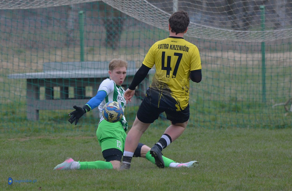 KRZENIÓW. W grupie IV legnickiej Klasy B tempa nie zwalniają rezerwy Jaworzanki 1946 Jawor, zajmujące pierwsze miejsce w tabeli. W drugim meczu w 2026 roku po raz drugi osiągnęły dwucyfrową liczbę strzelonych goli. Tym razem podopieczni Dariusza Szeligi i Dariusza Czai, na boisku w Nowym Kościele, rozbili Tatrę Krzeniów 10:0.