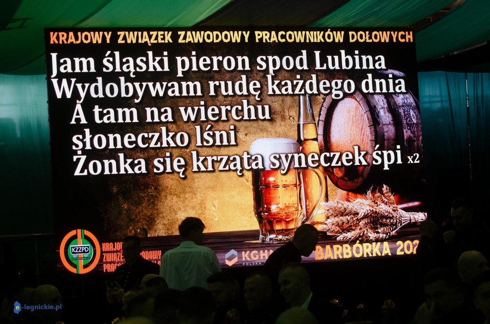 - To jest karczma dla "dołowców" i oni muszą na tych karczmach być, bo to jest ich święto. Oni ciężko pracują, oni zasługują na to, żeby takie karczmy były. Te karczmy są dla nich. To jest wyraz szacunku dla nich za cały rok ciężkiej pracy i myślę, że to im się należy jak nikomu na świecie. My na dole nie dzielimy ludzi na białych, czerwonych, czarnych. Łączy nas ciężka praca dla dobra miedziowego koncernu - mówił Jan MŁYNARCZYK. - My się tutaj bawimy ale czekamy na historyczną, strategiczną dla nas i KGHM decyzję o obniżeniu podatku miedziowego. Właściwie czekamy tylko na podpis Prezydenta RP. To daje naszemu regionowi szansę na dalszy dynamiczny rozwój. Pamiętamy o tym kto pomógł a kto był hamulcowym w tym dziele. Tym co pomagali od serca podziękowaliśmy po górniczemu.
