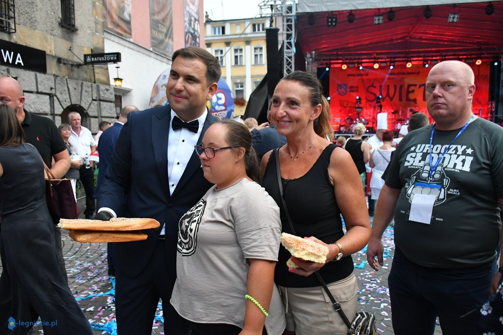 Część oficjalna zakończyło częstowanie chlebem i piekarniczymi wyrobami gości zgromadzonych na jaworskim Rynku