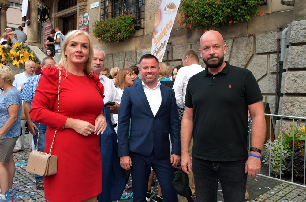 Wcześniej na scenie zaproszeni goście komplementowali Jawor, gospodarza miasta i idee Święta Chleba. Nie obeszło się bez wręczania okazałych podarunków. Elżbieta JEDLECKA, wójt gminy Wądroże Wielkie wręczając kosz wypieków wspólnie z Mariuszem FORYSIEM wójtem Mściwojowa wyraziła nadzieję, że polski chleb będzie łączył a nie dzielił samorządowców powiatu jaworskiego...
