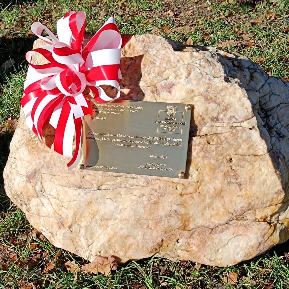 Kamień przekazany przez Pana Wojciecha Kraseckiego, na którym została zamontowana tablica stanął pod historycznym, monumentalnym dębem w Budziszowie Wielkim, posadzonym przez przodków. W uroczystości poświęcenia monumentu udział wzięli mieszkańcy miejscowości z Sołtysem Waldemarem Stęcel, strażakami z OSP Budziszów Wielki, oraz Zespół Folklorystyczny Cichowodzianie.