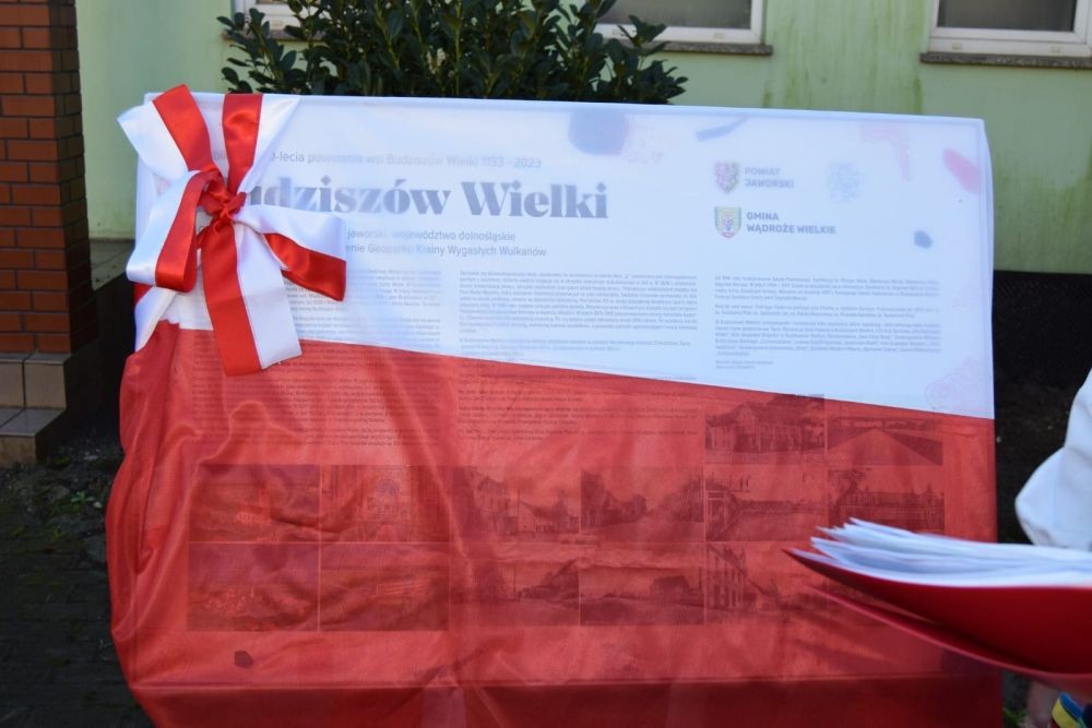 WĄDROŻE WIELKIE. 830 lat temu powstały pierwsze zapiski na temat miejscowości Budziszów Wielki – to data, od której liczymy powstanie tej miejscowości. Z tej okazji, Elżbieta Jedlecka Wójt Gminy Wądroże Wielkie ufundowała tablicę pamiątkową, która, w obecności mieszkańców została „odsłonięta” i poświęcona przez księdza proboszcza Piotra Repelowskiego.