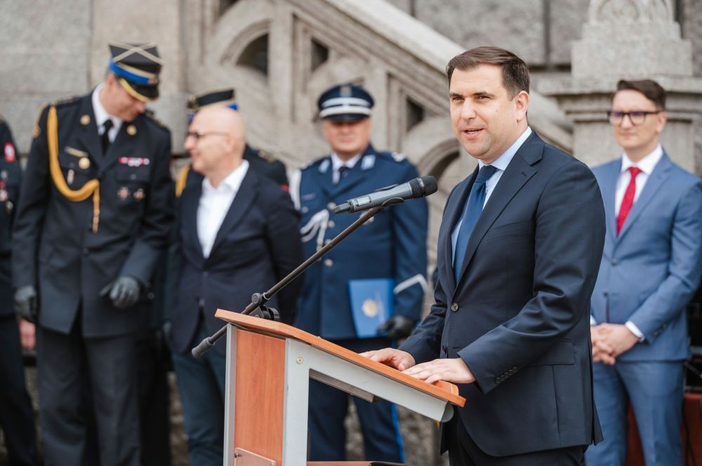JAWOR. Z udziałem Komendanta Komendy Powiatowej Państwowej Straży Pożarnej w Jaworze kpt. Mirosława Walaszczykai oraz Prezesa Oddziału Powiatowego ZOSP RP w Jaworze dh Jan Grygorcewicza, b. marszałek Sejmu Elżbiety WITEK, sekretarza stanu w Ministerstwie Aktywów Państwowych Roberta KROPIWNICKIEGO, władz miejskich z burmistrzem Emilianem BERA, władz Powiatu Jaworskiego ze starostą Powiat Michałem BANDEREM, przewodniczącym RP Mariuszem BARAŃSKIM, samorządowcami Powiatu Jaworskiego z wójt gminy Wądroże Wielkie Elżbietą JEDLECKĄ na czele, odbyły się w sercu Jawora obchody Dnia Strażaka.