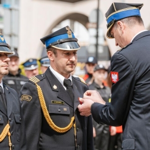 Po mszy św. poczty sztandarowe PSP oraz zaproszeni goście przeszli na płytę jaworskiego Rynku gdzie odbyły się główne uroczystości Dnia Strażaka. Podczas uroczystego apelu Zastępca Komendanta Wojewódzkiego Komenda Wojewódzka Państwowej Straży Pożarnej we Wrocławiu st. bryg. Andrzej Fischer wręczył odznaczenia i awanse zawodowe dla Strażaków i Druhów