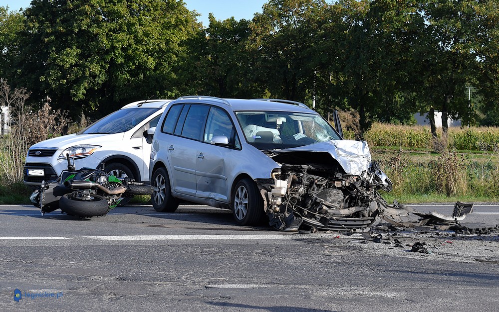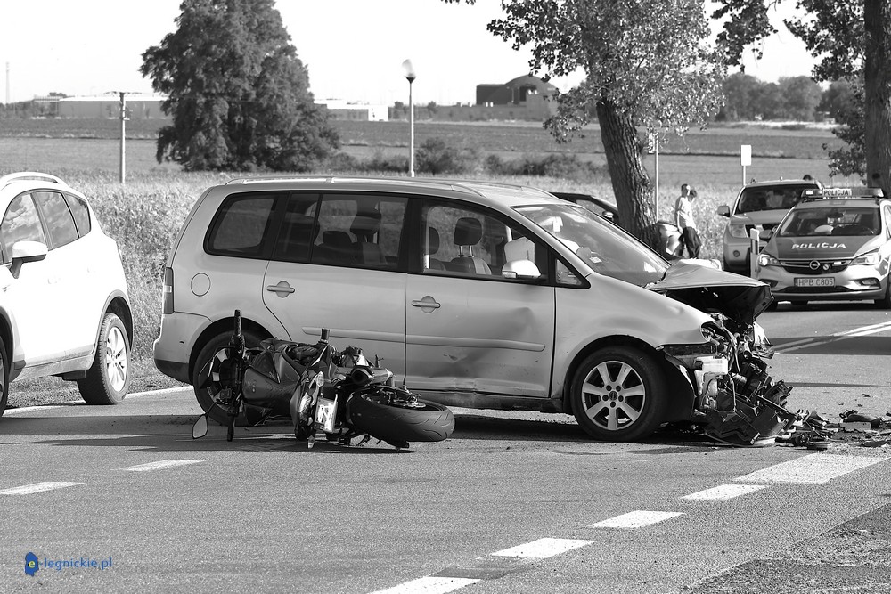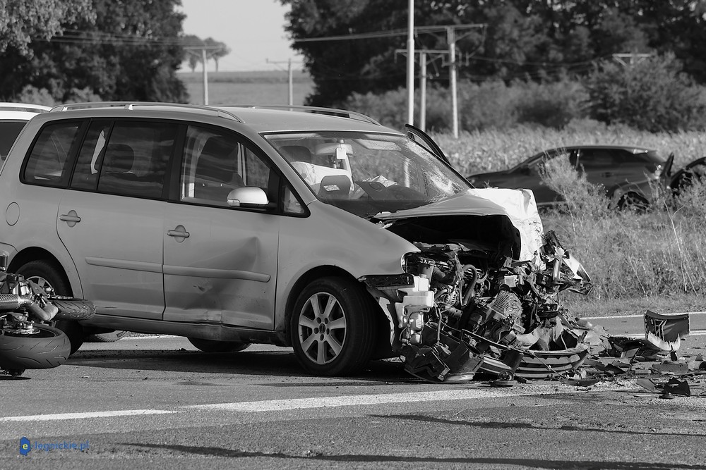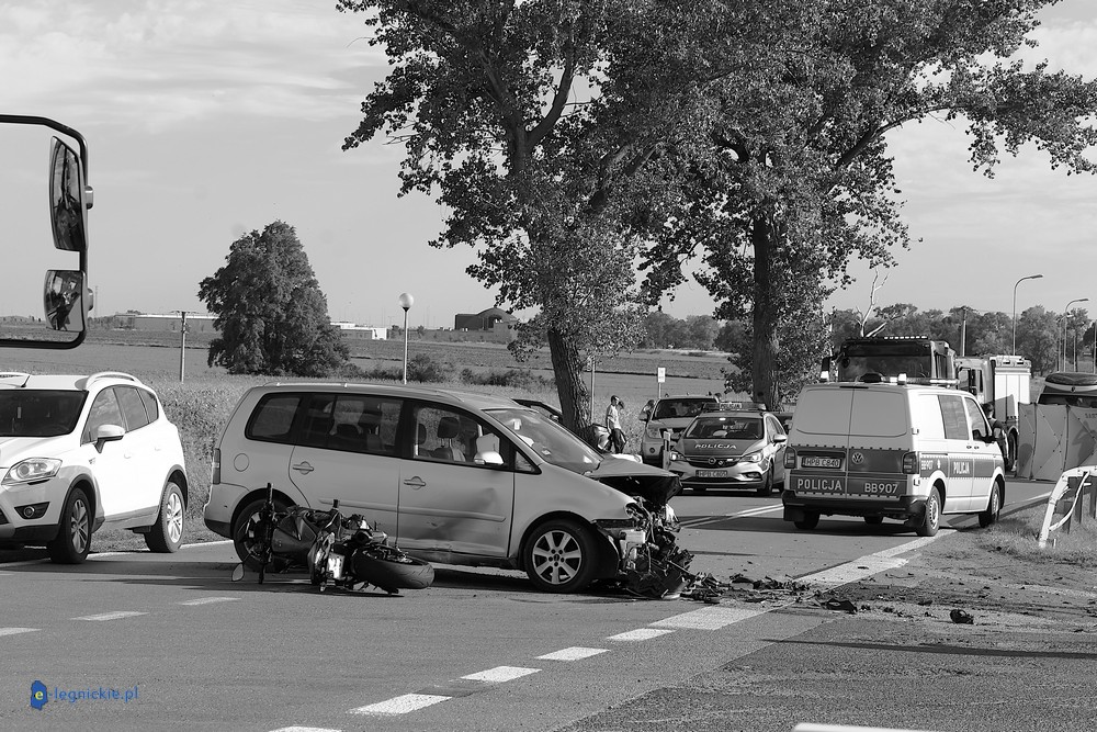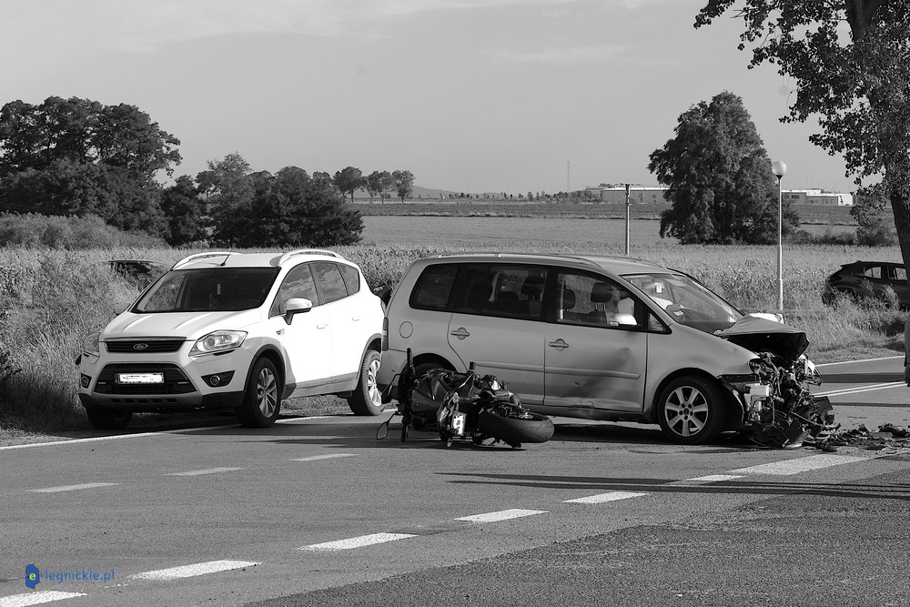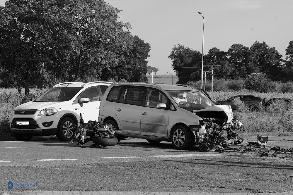 POWIAT JAWORSKI. Do tragicznego w skutkach wypadku doszło w powiecie jaworskim, blisko Małuszowa. W wyniku zderzenia trzech motocykli i dwóch samochodów osobowych na miejscu zginął kierowca jednośladu. Droga jest nieprzejezdna, a policja wyjaśnia okoliczności tragedii.