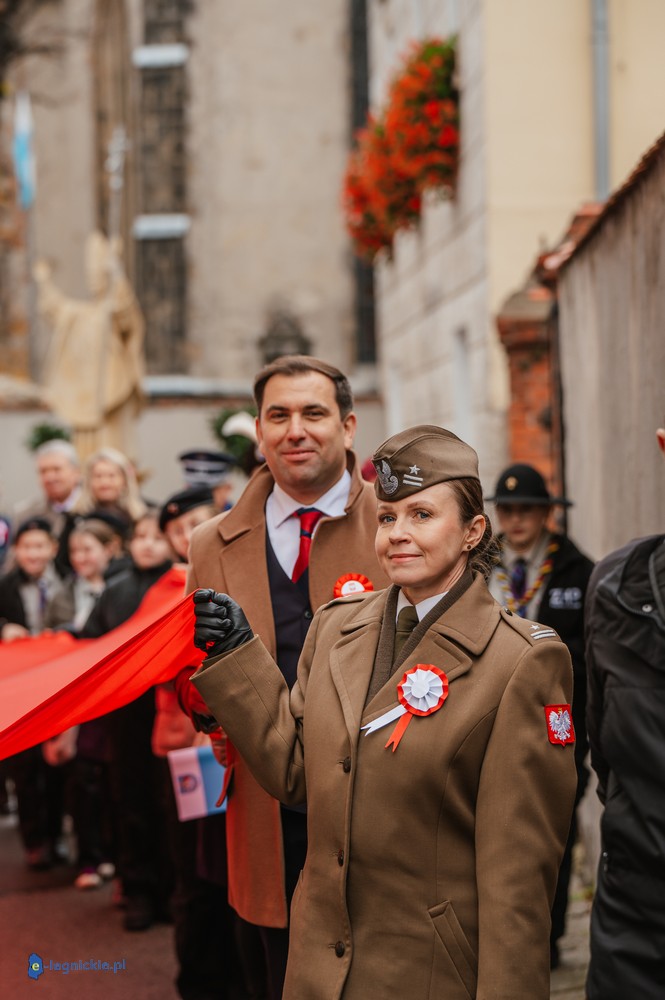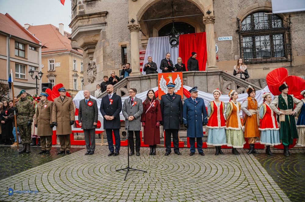 JAWOR. 11 listopada Jawor świętował podwójnie - Święto Niepodległości oraz Dzień Patrona Miasta, św. Marcina. Świętowanie rozpoczęła msza w intencji Ojczyzny , mieszkańców i władz miasta Jawora. Mszę Świętą odprawił ks. biskup Zbigniew Kiernikowski oraz ks. dziekan Łukasz Misiak. Po nabożeństwie korowód z flagą narodową przeszedł ulicami miasta na jaworski Rynek. W barwnym korowodzie z biało-czerwoną flagą zgromadzeni przeszli spod Kościoła Rzymskokatolickiego pw. św. Marcina na jaworski Rynek. Towarzyszyli w marszu m.in. żołnierze 10. Wrocławskiej Brygady Łączności oraz Orkiestra Kłos&Dąbrowski .
