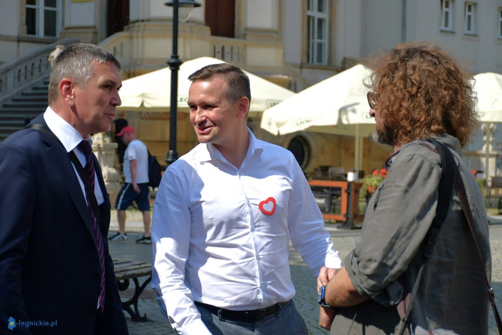 W Legnicy Robert KROPIWNICKI mówił: - Prezentujemy kandydatów , zbieramy podpisy i zarazem mobilizujemy wyborców aby wspólnie z nami doprowadzili do zmian w Polsce. Słyszałem, że wczoraj w Głogowie posłowie PiS obiecywali, że za kilka lat zostanie wybudowana obwodnica Głogowa i powstanie nowa przeprawa przez Odrę. Ale PiS od 8 lat obiecuje tę inwestycje głogowianom - a ja mówię krótko: jak przejmiemy władze to obwodnicę wybudujemy!