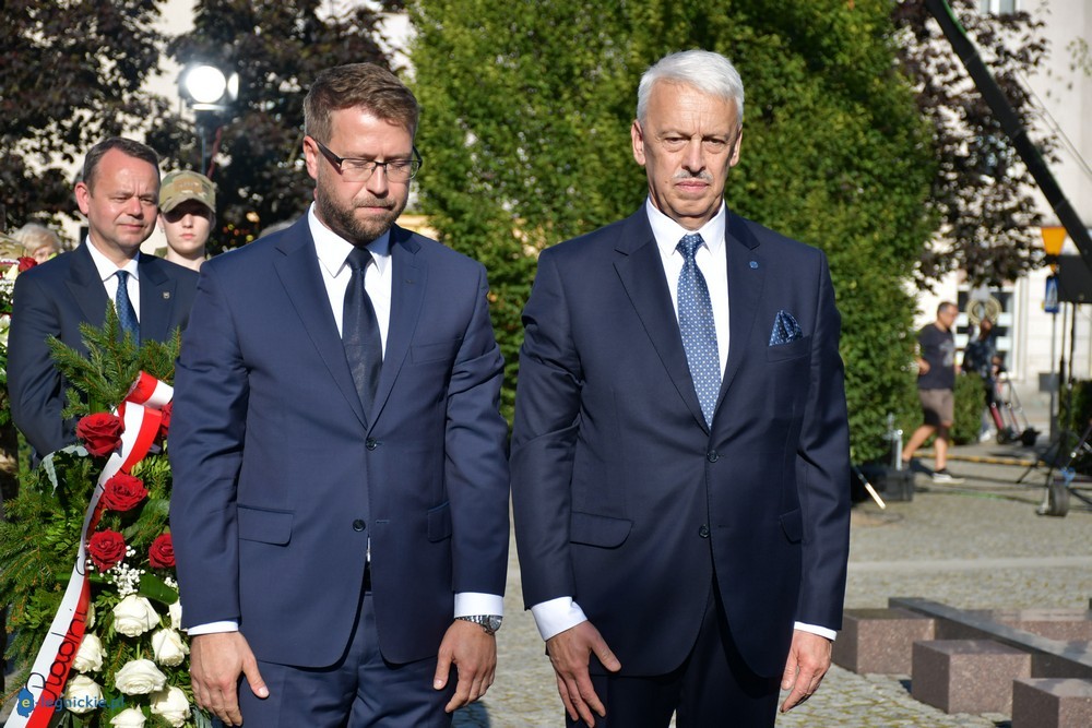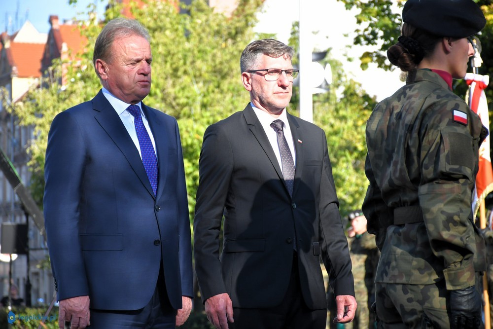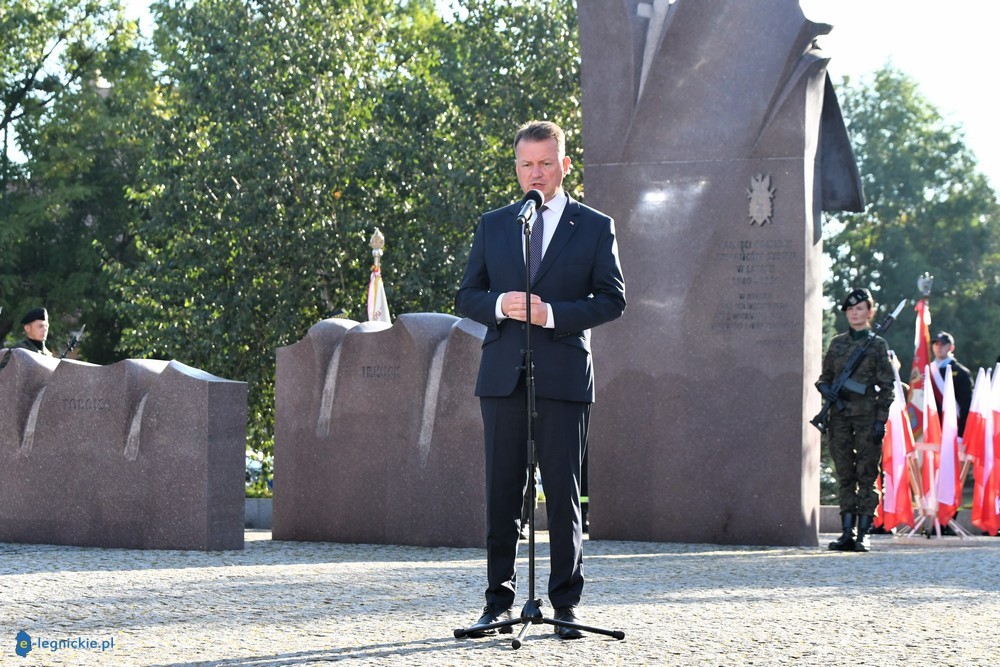 LEGNICA. W Legnicy na placu przed Pomnikiem Zesłańcom Sybiru z udziałem marszałek Sejmu Elżbiety WITEK, ministra Obrony Narodowej Mariusza BŁASZCZAKA, parlamentarzystów, zarząd KGHM Polska Miedź z Tomaszem ZDZIKOTEM na czele oraz licznego grona samorządowców z Dolnego Śląska i Zagłębia Miedziowego odbyły się centralne uroczystości w 84. rocznicę agresji sowieckiej na Polskę oraz 30. rocznicę wyprowadzenia wojsk radzieckich z Polski. - Tutaj w Legnicy, ale także w innych miastach, gdzie stacjonowały wojska sowieckie, stworzyli swoje odrębne miasta. Mieli tam szkoły, przedszkola, sklepy, administrację. U nich można było w sklepach dostać wszystko. U nas były puste półki. Odgrodzeni od nas wysokim murem, do końca nie wiedzieliśmy, jak wygląda to ich miasto w polskim mieście. Dzisiaj oddajemy cześć i chwałę tym wszystkim, którzy zostali zamordowani przez Sowietów. Dziś także oddajemy hołd polskim żołnierzom. Cześć i chwała bohaterom – mówiła Elżbieta Witek.