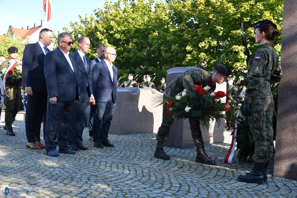 Po przemówieniach wszystkie delegacje pod Pomnikiem złożyły okolicznościowe wieńce i wiązanki kwiatów. O godzinie 14.00 na legnickim Rynku rozpocznie się piknik wojskowy z udziałem Marszałek Sejmu Elżbiety Witek.
