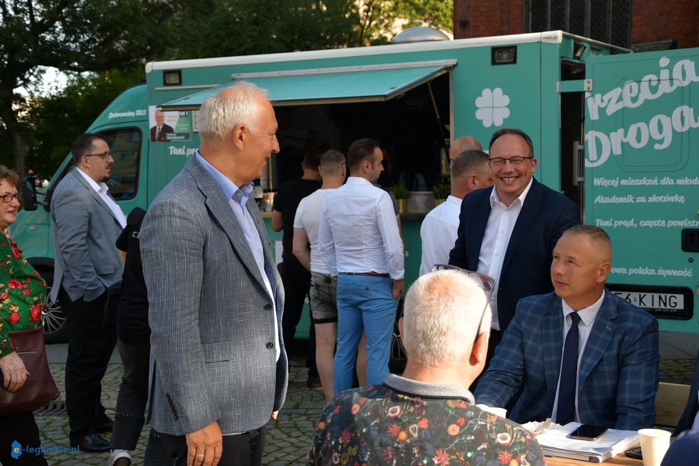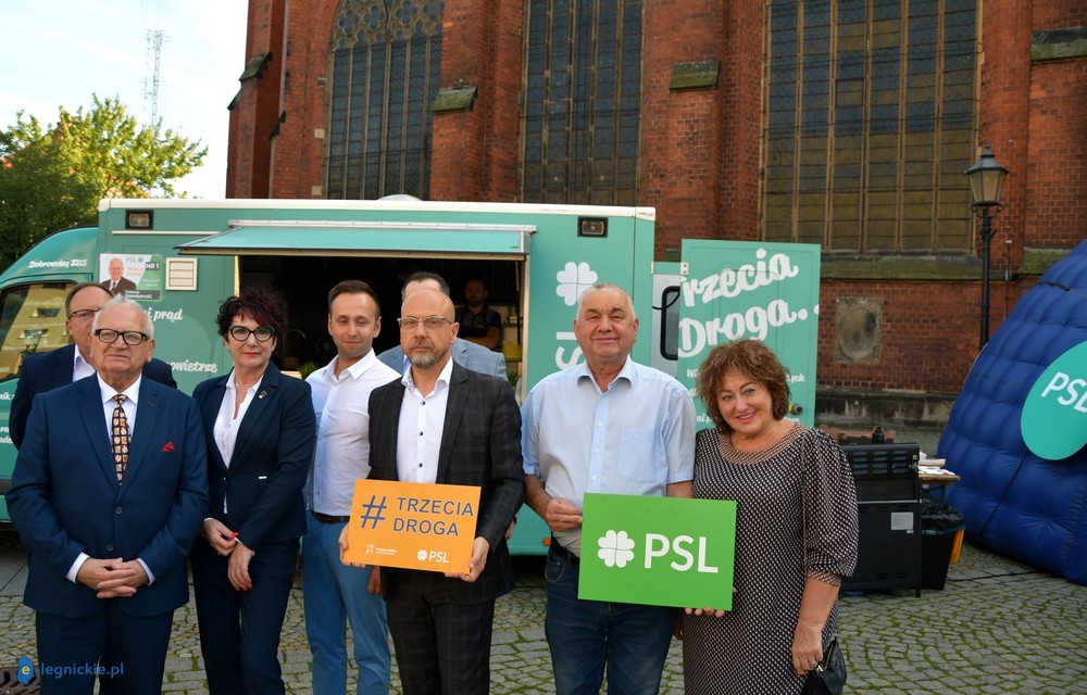 LEGNICA. Zielone food trucki, a właściwie „green trucki” oklejone hasłami: "Tani prąd, czyste powietrze", "Akademik za złotówkę", "Więcej mieszkań dla młodych" czy "Szkoła wolna od polityki" w środowe popołudnie zaparkowały na legnickim Rynku., PSL w ten sposób promuje wyborcze propozycje Trzeciej Drogi. – Zastanawialiśmy się, jak dotrzeć do Polaków z naszymi propozycjami programowymi i stwierdziliśmy, że takie połączenie prezentacji naszych pomysłów programowych z promocją polskiej żywności idealnie się komponuje – tłumaczył lider Polskiego Stronnictwa Ludowego zapowiada Władysław Kosiniak-Kamysz.