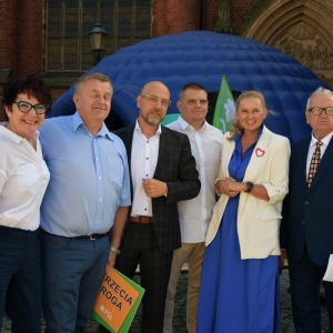 Wśród ludowców pełna mobilizacja i na Rynku stawili się wszyscy kandydujący z Trzeciej Drogi do Sejmu. Brylowali samorządowcy: Mariola SZCZESNA, burmistrz Lwówka Śląskiego i Andrzej NIEMIEC, wójt Malczyc(kandyduje z okręgu wrocławskiego). Oboje mają ogromne atuty: za ich samorządowej kadencji zarówno Lwówek Śląski ,jak i Malczyce przechodzą prawdziwą metamorfozę gospodarczo-inwestycyjną.