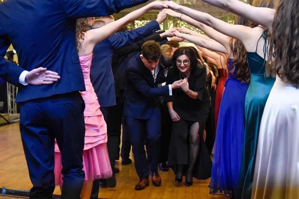 Dyrektor liceum Halina Tamioła złożyła serdeczne życzenia maturzystom, a następnie z gracją poprowadziła abiturientów w dwóch polonezach.
