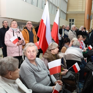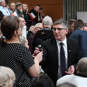 LEGNICA. Blisko 1000 osób członków, zwolenników Zjednoczonej Prawicy pojawiło się w Centrum Konferencyjnym LSSE w Legnicy na otartym spotkaniu z b. premierem, wiceprezesem Prawa i Sprawiedliwość Mateuszem MORAWIECKIM. M. Morawiecki mówił o sytuacji w kraju, krytykował działania rządu Donalda Tuska i prosił zwolenników Prawa i Sprawiedliwości o aktywność w wyborach samorządowych. Mówił: - Na polskiej scenie politycznej mamy "równoległe dwa argumenty działań". Są to "argument siły i siła argumentu".