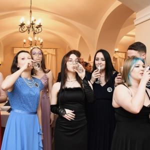 Dyrektor szkoły Tomasz Łabowicz złożył serdeczne życzenia maturzystom powodzenia na maturze i udanego startu w dorosłe życie, a tradycyjny polonez oznaczał początek szampańskiej zabawy...