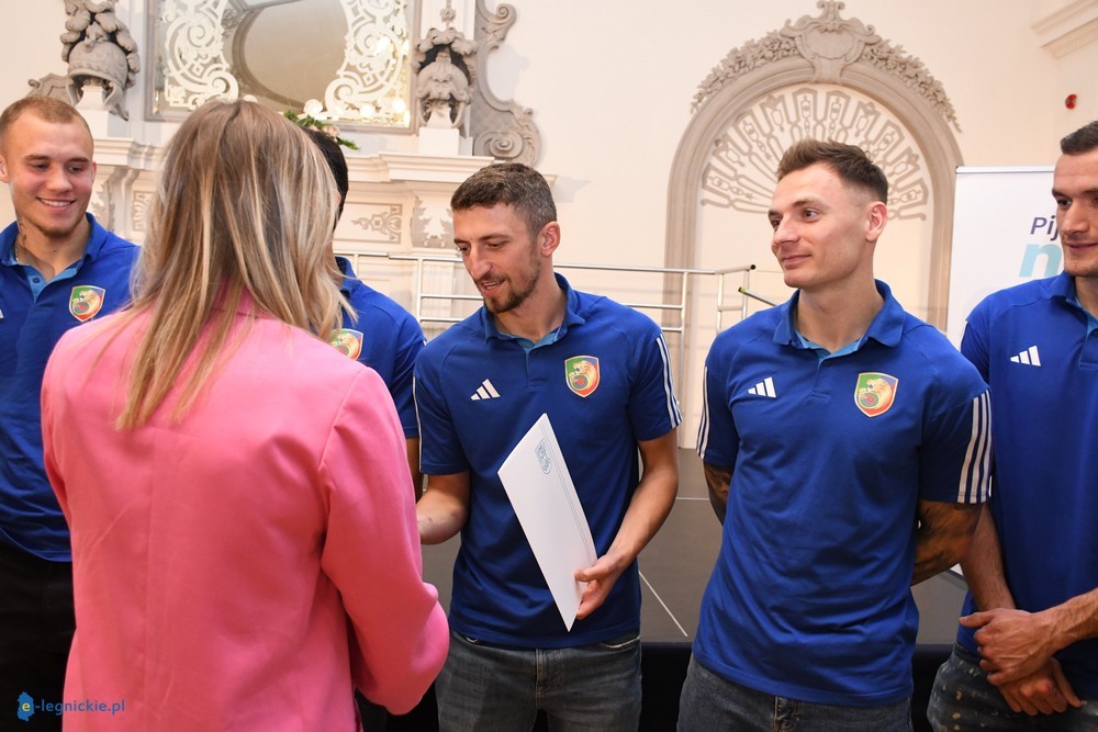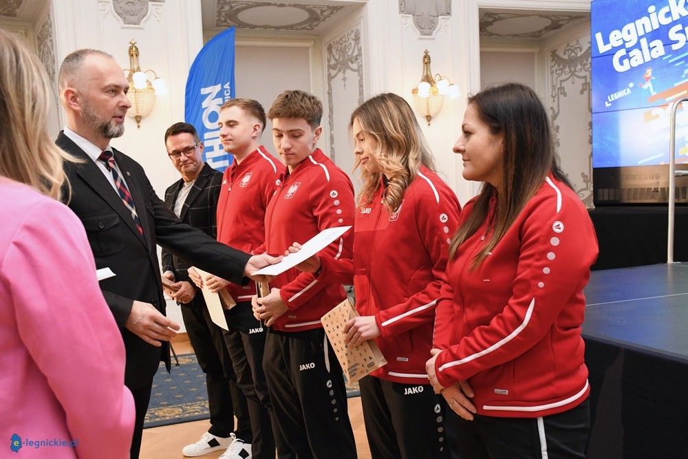 LEGNICA. Sala Królewska Akademii Rycerskiej w Legnicy była miejscem wyjątkowym dla legnickiego świata sportu. W środowe popołudnie Krzysztof DUSZKIEWICZ, zastępca rezydenta Legnicy w zastępstwie przeziębionego Tadeusza KRZAKOWSKIEGO, nagrodził kilkudziesięciu sportowców, trenerów i działaczy - Sport w legnickich klubach uprawia około 4 tysiące zawodników, w tym ok. 3.600 dzieci i młodzieży i t jest powód do dumy - powiedział Krzysztof DUSZKIEWICZ, zastępca prezydenta Legnicy. - W 2023 r. organizacje sportowe otrzymały z Gminy Legnica środki finansowe w łącznej wysokości 2.032.762,82 zł, co wyróżnia Legnicę na tle Dolnego Śląska. Legnickie kluby sportowe korzystają na preferencyjnych warunkach z obiektów sportowych będących w zarządzie OSIR w Legnicy jak i przyszkolnych.
