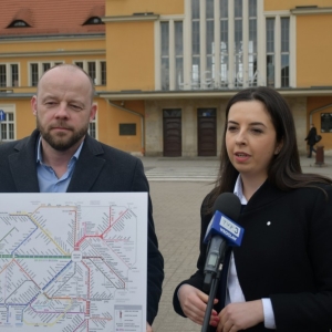 LEGNICA. Patryk WILD, radny Sejmiku oraz Iwona BUDYCH( nr 1 w okręgu nr 5 do Sejmiku Dolnośląskiego), liderzy Koalicji Samorządowej OK SAMORZĄD w Legnicy przedstawili część programu wyborczego ich ugrupowania. Skomunikowany region - oznacza to dostępność transportową do stolicy Dolnego Śląska oraz miast powiatowych województwa dzięki rozwiązaniom komunikacji kolejowej i autobusowej. Dobrze funkcjonująca sieć transportowa, to swoisty krwiobieg rozwoju społecznego i gospodarczego... - Transport publiczny na Dolnym Śląsku już za kilka lat ma szansę wyglądać tak jak na załączonym schemacie sieci kolejowej. Obliczyliśmy, że ponad 250 tysięcy osób w 20 miastach i 9 gminach zostanie objętych kolejową obsługą transportową. To realna odpowiedź na redukcję białych plam transportowych na mapie Dolnego Śląska – mówił Patryk Wild . - Przede wszystkim powinny zostać uruchomione wszystkie odcinki linii kolejowych, które w kończącej się właśnie kadencji zostały przejęte, chociażby po to, by w regionie legnicko-głogowskim można było dojechać do Złotoryi, która jest odcięta od transportu kolejowego. To niezwykle ważne. – zaznaczył Patryk Wild.