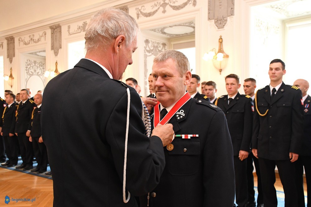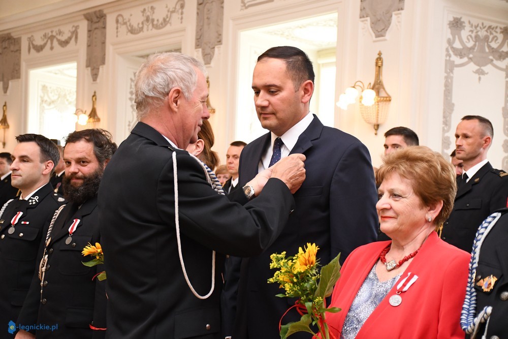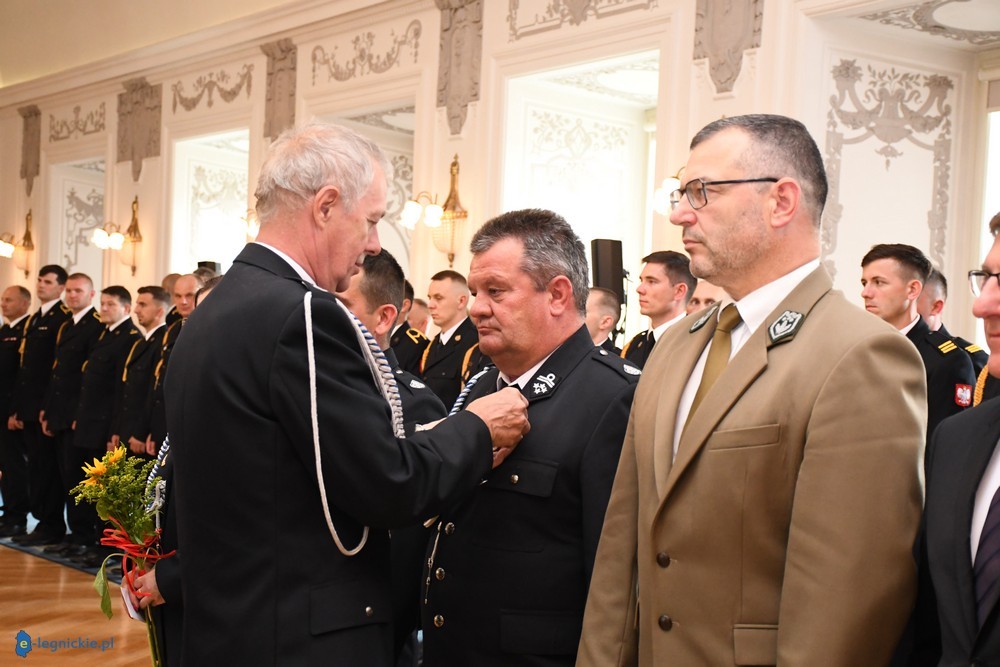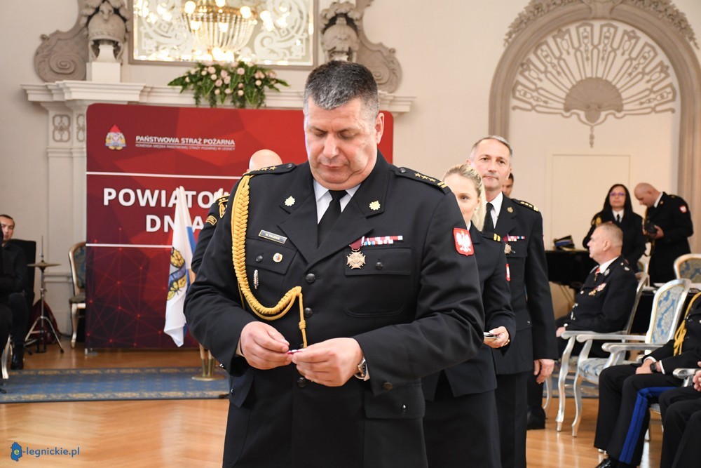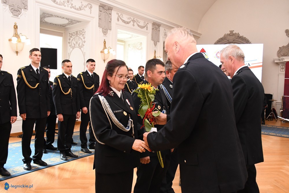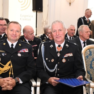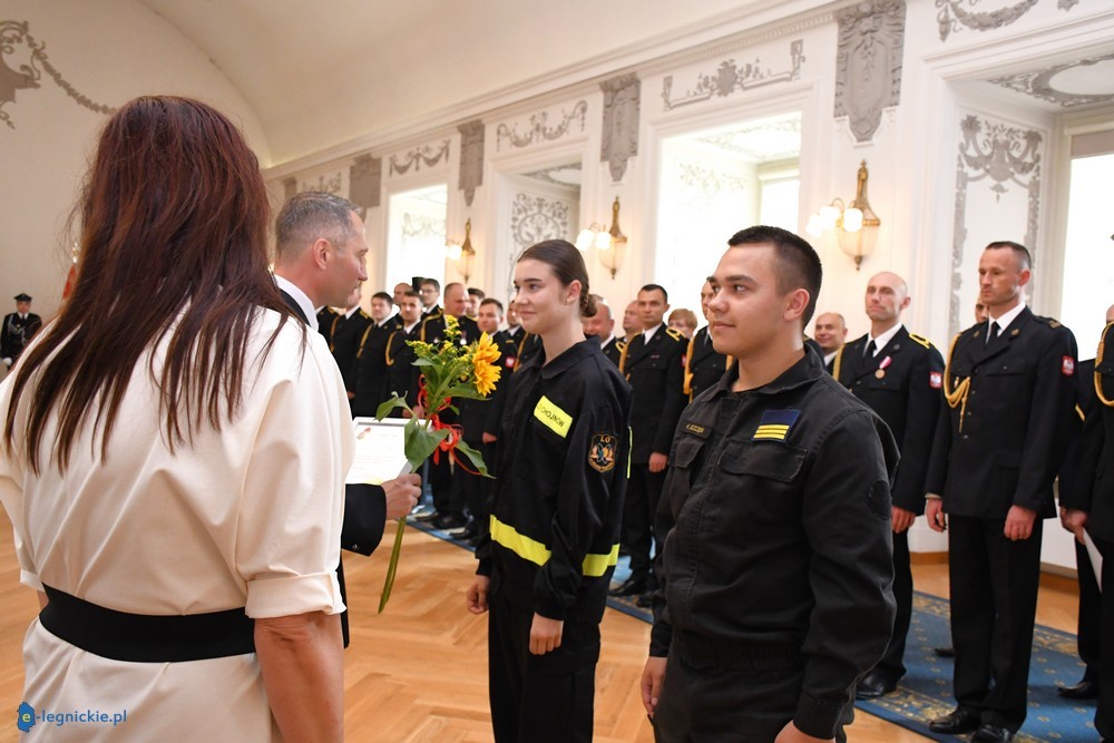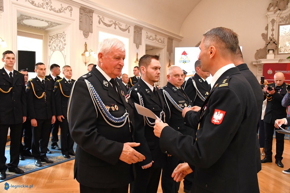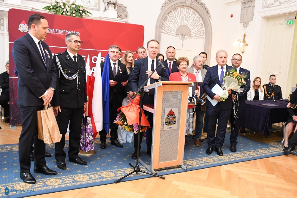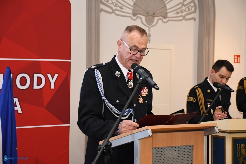 Dyplom z wyrazami uznania i podziękowaniami za działalność na rzecz Krajowego Systemu Ratowniczo-Gaśniczego i ochrony przeciwpożarowej miasta Legnicy i powiatu legnickiego otrzymali Piotr Czekaj, Piotr Owczarek oraz Marek Przybylski.