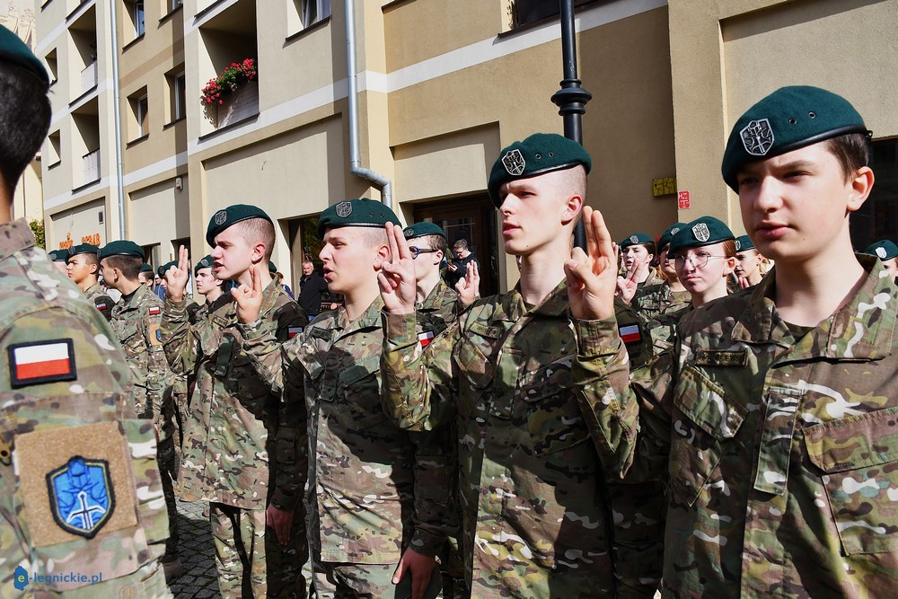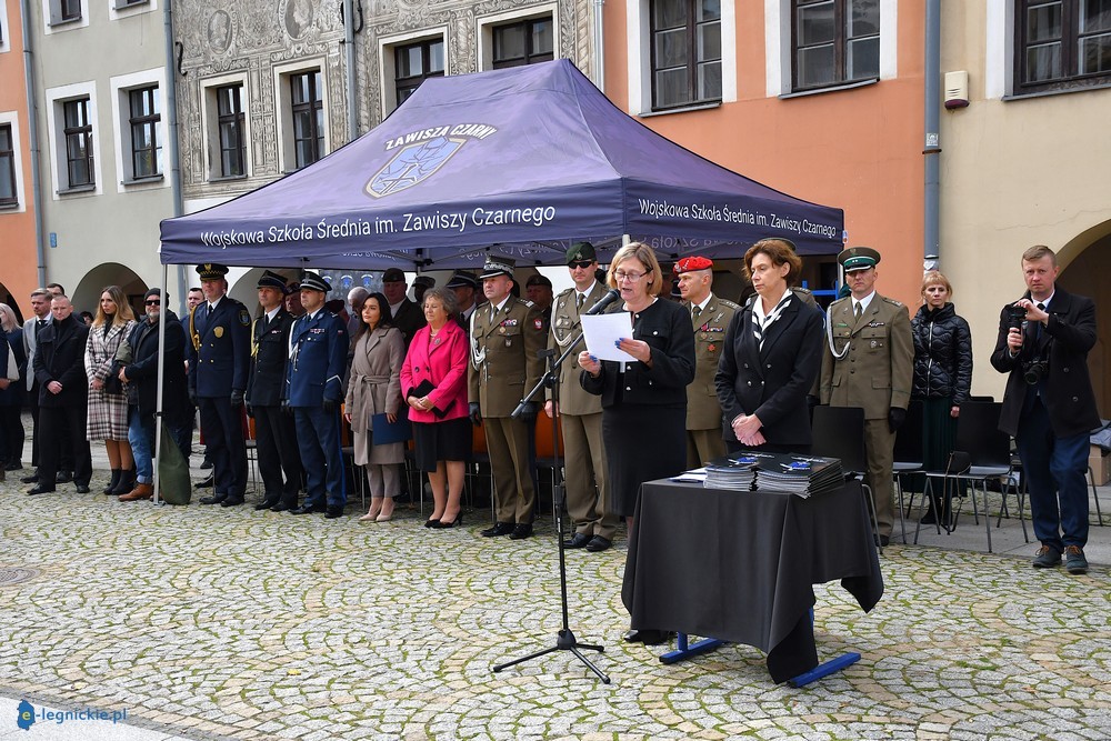 LEGNICA. Zdyscyplinowani, z dumnie wypiętą piersią, na baczność złożyli uroczyste ślubowanie kadeta. 26 uczniów Wojskowej Szkoły Średniej im. Zawiszy Czarnego w Legnicy w obecności rodzin, znajomych i zaproszonych gości wypowiedziało dziś słowa roty. Uroczystość ślubowania kadetów rozpoczęła się mszą św. z ceremoniałem wojskowym w legnickiej katedrze. Potem, wciąż jeszcze uczniowie, pod batutą orkiestry wojskowej z Żagania przeszli na legnicki Rynek, by tam wypowiedzieć słowa roty.