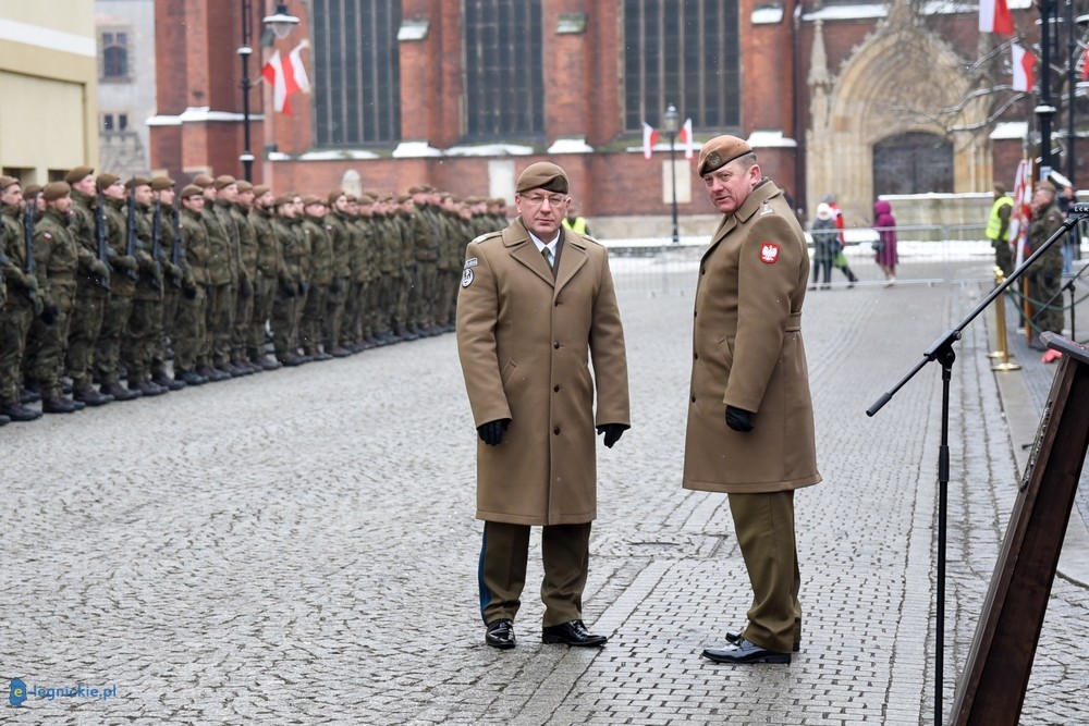 LEGNICA. „Ja, żołnierz Wojska Polskiego przysięgam służyć wiernie Rzeczypospolitej Polskiej, bronić jej niepodległości i granic. Stać na straży Konstytucji, strzec honoru żołnierza polskiego, sztandaru wojskowego bronić. Za sprawę mojej Ojczyzny w potrzebie, krwi własnej ani życia nie szczędzić. Tak mi dopomóż Bóg.”