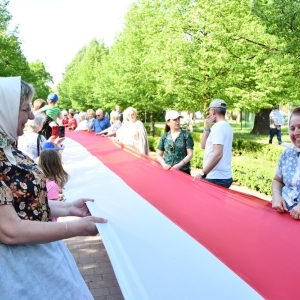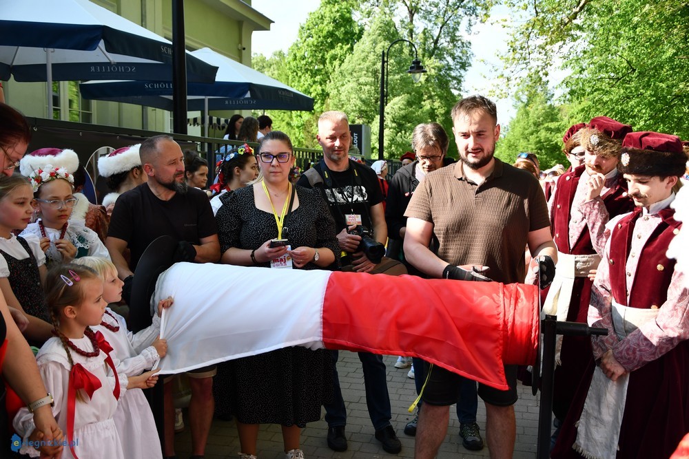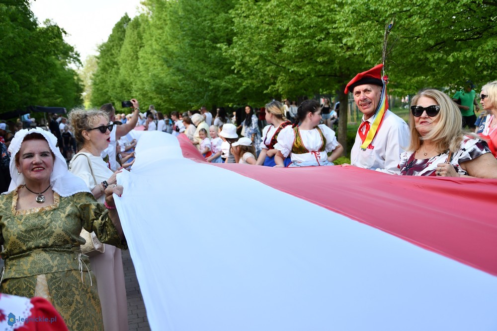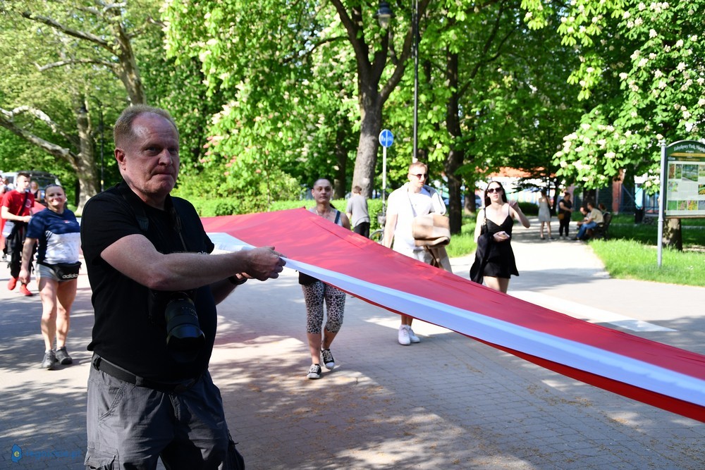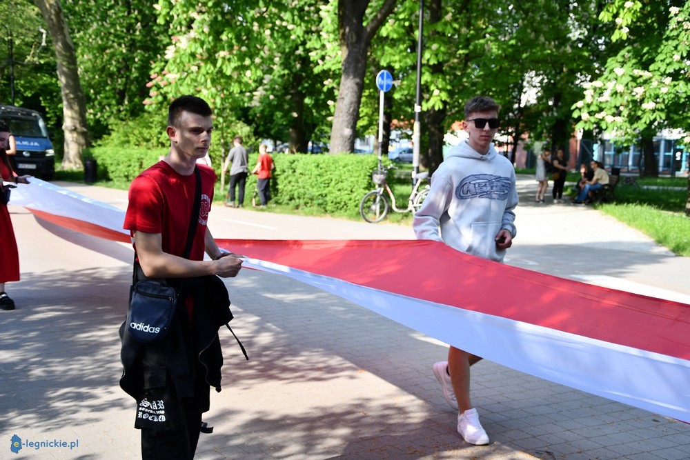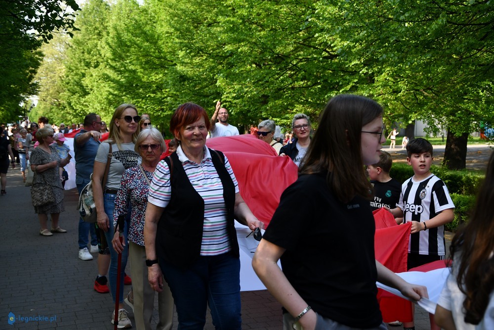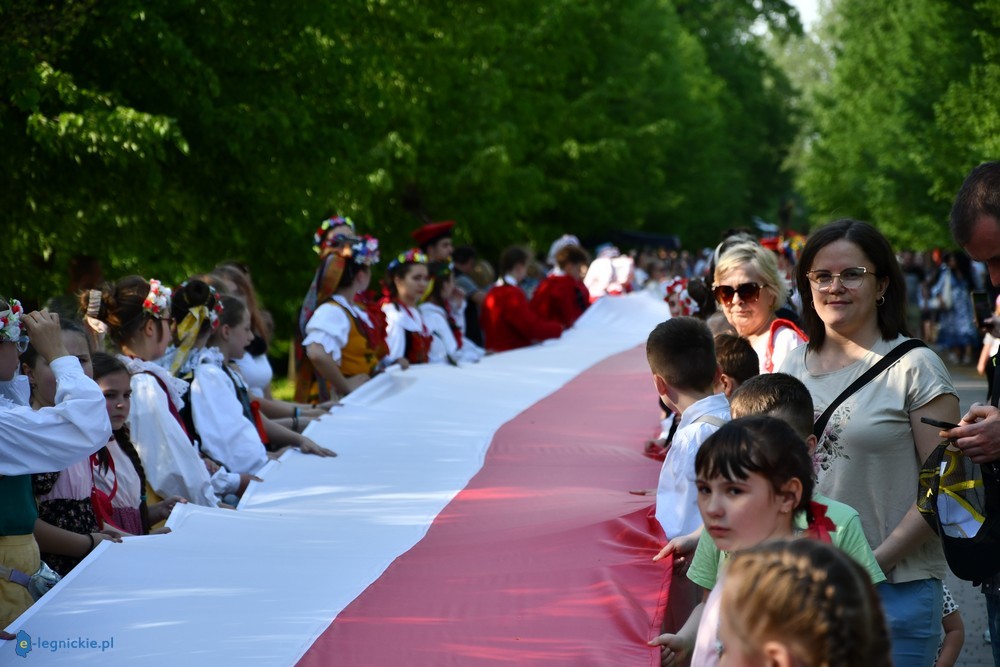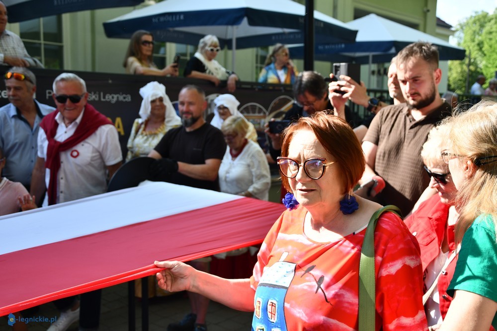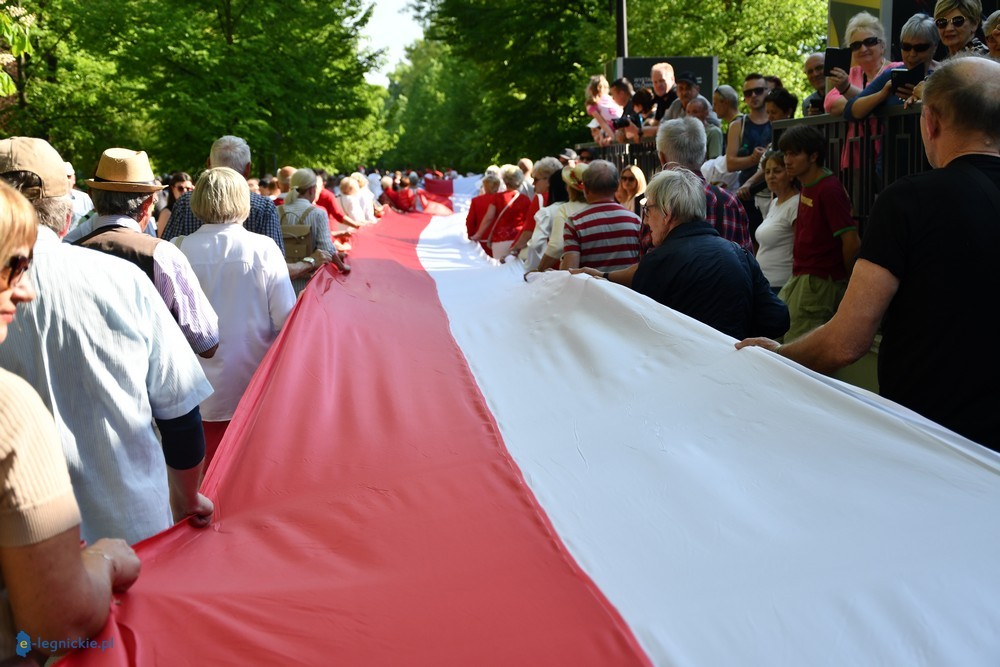 LEGNICA. Od kilku lat w Legnicy jest tradycja rozciągania coraz dłuższej flagi biało-czerwonej na 2 maja. Legniczanie chętnie dołączają do tej inicjatywy i w tym roku kilkaset osób rozwinęło najdłuższą na Dolnym Śląsku flagę, która liczy już 500 metrów. Prezydent miasta Maciej Kupaj zapowiedział, że za rok będzie to już 600 metrów.