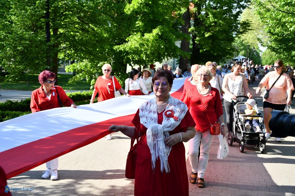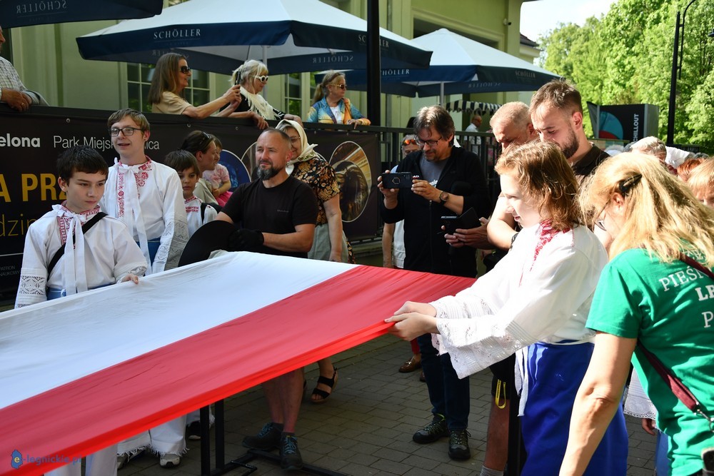 W legnickim parku, wzdłuż alei Orła Białego, symbolicznie, rozwinięta została biało-czerwona flaga. Było, jak zawsze, pięknie. Dopisała też pogoda a święto można było celebrować też na Polanie Angielskiej w parku, gdzie odbywały się pokazy tańca seniorów z Legnickiego Centrum Kultury czy Zespołu Pieśni i Tańca "Legnica". Było więc Polsko, patriotycznie.