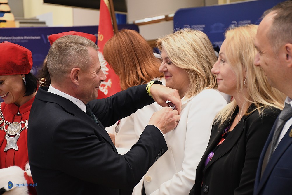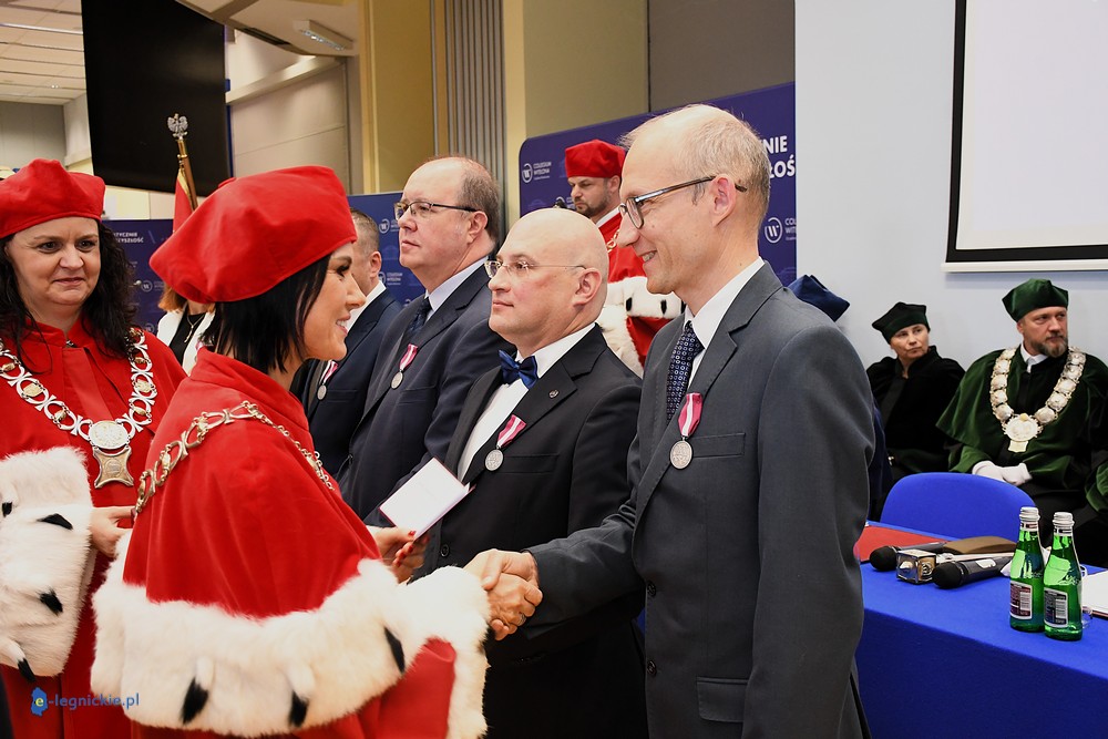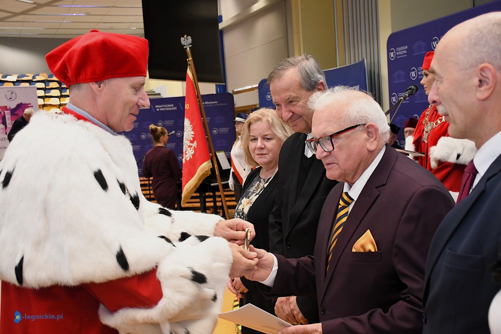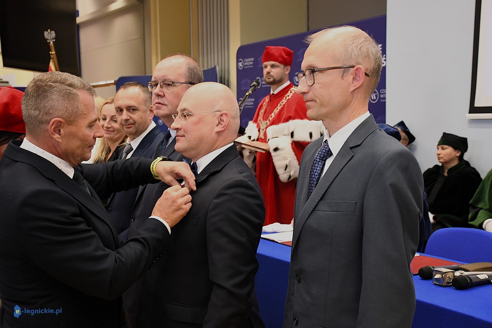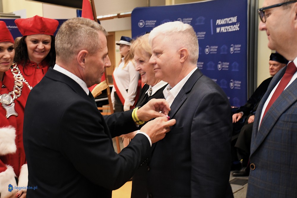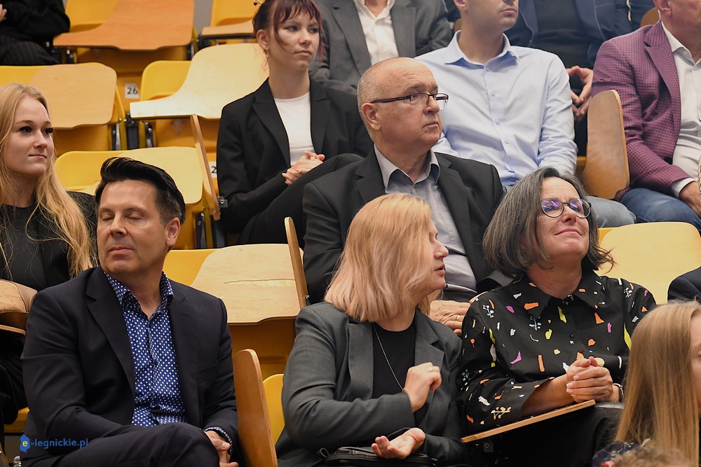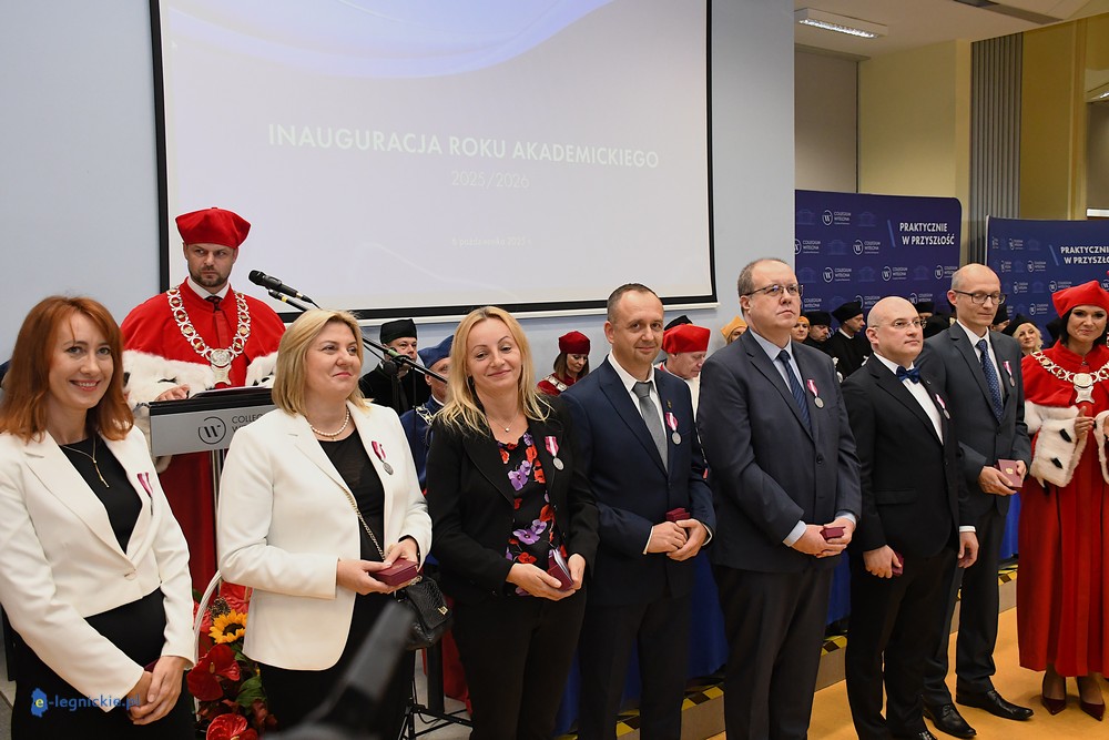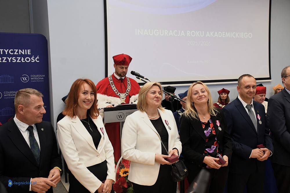 LEGNICA. W Centrum Konferencyjno-Widowiskowym Collegium Witelona Uczelnia Państwowa odbyła się uroczysta Inauguracja Nowego Roku Akademickiego 2025/2026. W wydarzeniu wzięli udział parlamentarzyści (dr Tadeusz SAMBORSKI). włądz wojewódzkich z wicewojewodą Arturem JURKOWSKIM, przedstawiciele władz samorządowych regionu (starosta Powiatu Jaworskiego Michał BANDER w towarzystwie Joanny PIOTROWICZ-DĘBICKIEJ), władze Powiatu Legnickiego ze starostami Adamem BABUŚKA i Janiną MAZUR, burmistrz Złotoryi Paweł KULIG, wójt gminy Paszowice Sebastian OSZCZĘDA, burmistrz Chojnowa Jan SERKIES, świata gospodarki (Piotr STRYCZEK, wiceprezes zarządu KGHM Polska Miedź oraz wiceprezes Fundacji Polska Miedź Grzegorz STYRKOWIEC), świata nauki, biznesu oraz studenci i pracownicy uczelni. Nie zabrakło prezesa LSSE dr Kajetana BATORA czy prezesów ARLEG-u. Z zażenowanie przyjęto fakt nieobecności przedstawicieli Ratusza w Legnicy...