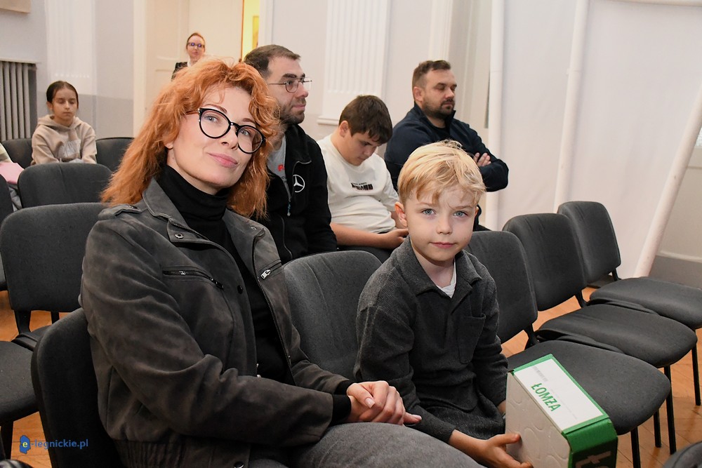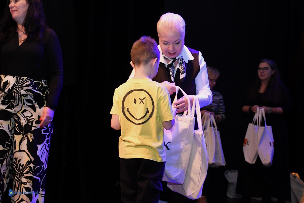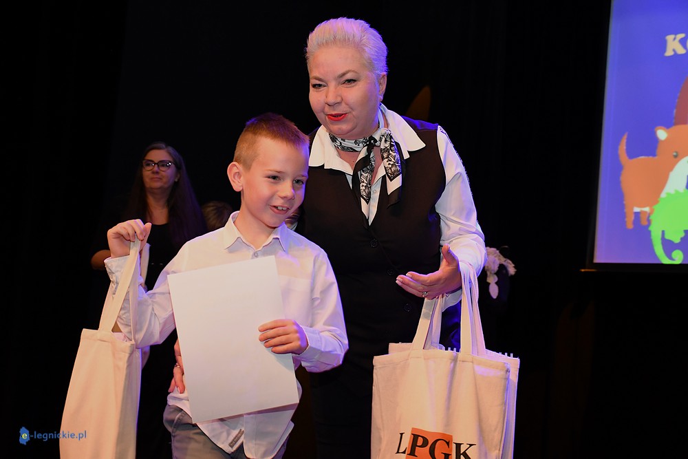 Po zakończeniu tej części programu rozpoczęła się oficjalna uroczystość - rozdanie nagród konkursowych. Zwycięzcy i wyróżnieni uczestnicy konkursu plastycznego z dumą odebrali swoje dyplomy i upominki ufundowane przez LPGK . Nie mniejszą satysfakcję mieli rodzice nagrodzonych, którzy siedzieli na widowni i gromkimi brawami nagradzali swoje pociechy.