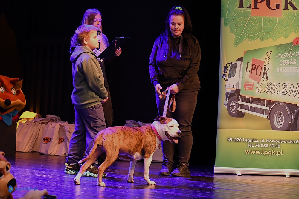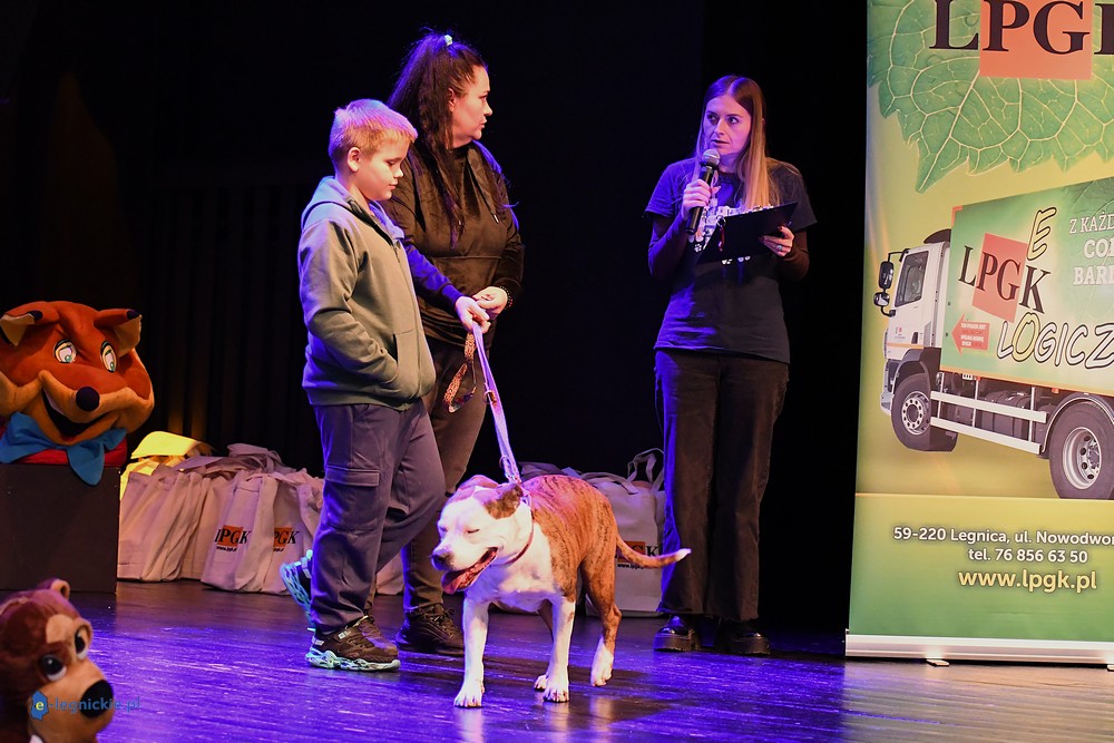 Miłą niespodzianką dla nagrodzonych była wizyta podopiecznej legnickiego Schroniska dla bezdomnych zwierząt - suczki Daisy. Legnickie Przedsiębiorstwo Gospodarki Komunalnej sprawuje pieczę nad funkcjonowaniem schroniska dla "bezdomniaków" , a dzisiejsze wydarzenie było okazją również do zaprezentowania zgromadzonej młodej widowni zasad postępowania w trzech sytuacjach związanych właśnie z psami : gdy znajdziemy bezpańskiego psa, gdy spotkamy psa z właścicielem, którego nie znamy, oraz gdy znamy jego opiekuna.