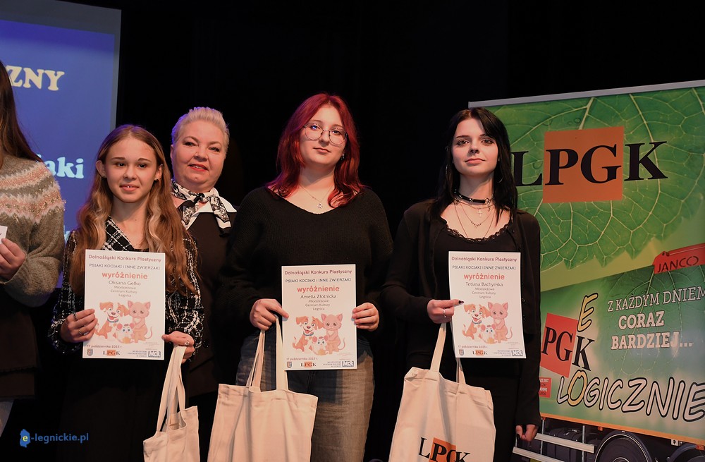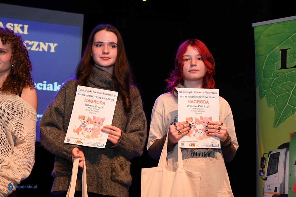 LEGNICA. W Młodzieżowym Centrum Kultury odbył się wielki finał Dolnośląskiego Konkursu Plastycznego „Psiaki, kociaki i inne zwierzaki”, który organizowany jest od wielu lat wspólnie z Legnickim Przedsiębiorstwem Gospodarki Komunalnej. Na tegoroczną edycję konkursu napłynęły aż 874 prace z całego województwa dolnośląskiego. Jury konkursowe miało ciężki orzech do zgryzienia, aby wyłonić laureatów, w sumie wybrało 75 najpiękniejszych i najciekawszych prac z podziałem na cztery kategorie wiekowe.