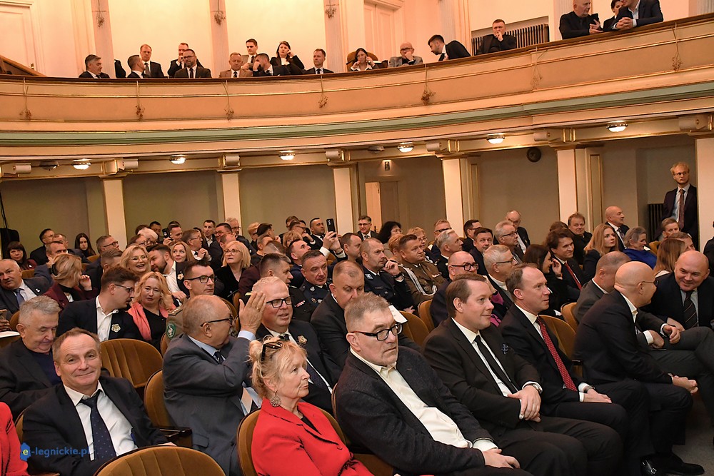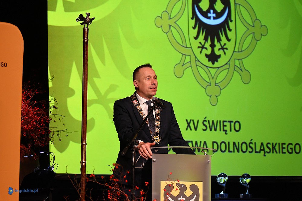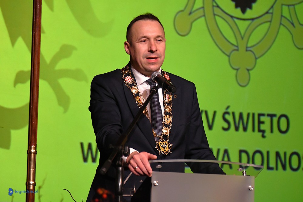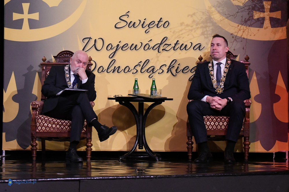 LEGNICA. Jerzy Pokój - Przewodniczący Sejmiku Województwa Dolnośląskiego otworzył uroczystą sesję Sejmik Województwa Dolnośląskiego...Dzisiaj w Legnicy obchodzimy Święto Dolnego Śląska. W tym roku połączone z 80 - leciem przyłączenia piastowskiego Dolnego Śląska do Polski. W Teatrze im H. Modrzejewskiej odbyła się uroczysta sesja sejmiku podczas której wręczono tytuły Civi Honorario. Legnica nieprzypadkowo została wybrana na miejsce celebrowania tak ważnej rocznicy. To właśnie w tym mieście tuż po wojnie miały siedzibę władze wojewódzkie- przypomniał Paweł Gancarz, marszałek Dolnego Śląska: