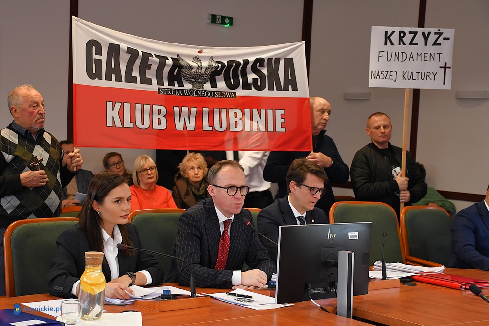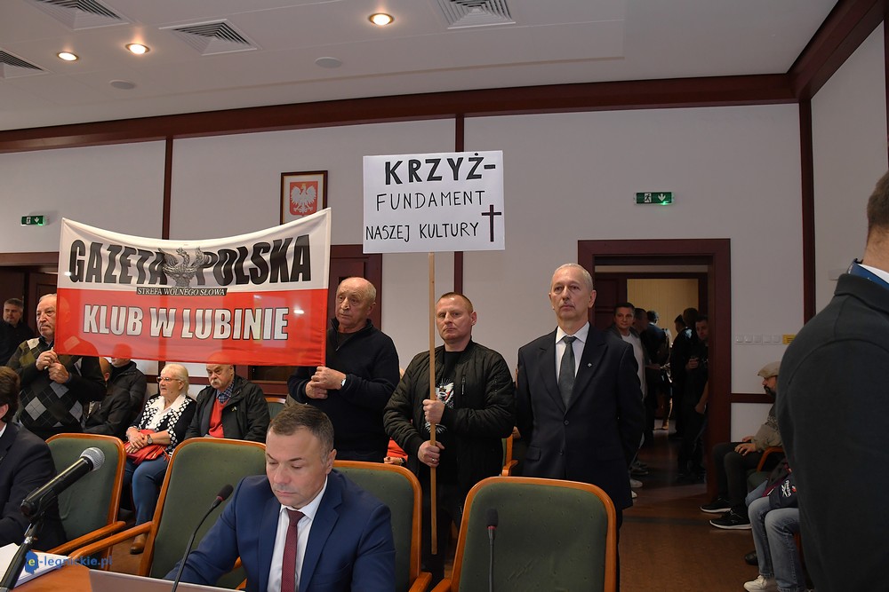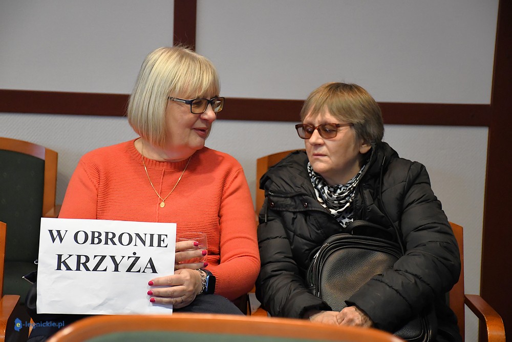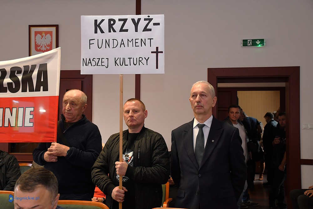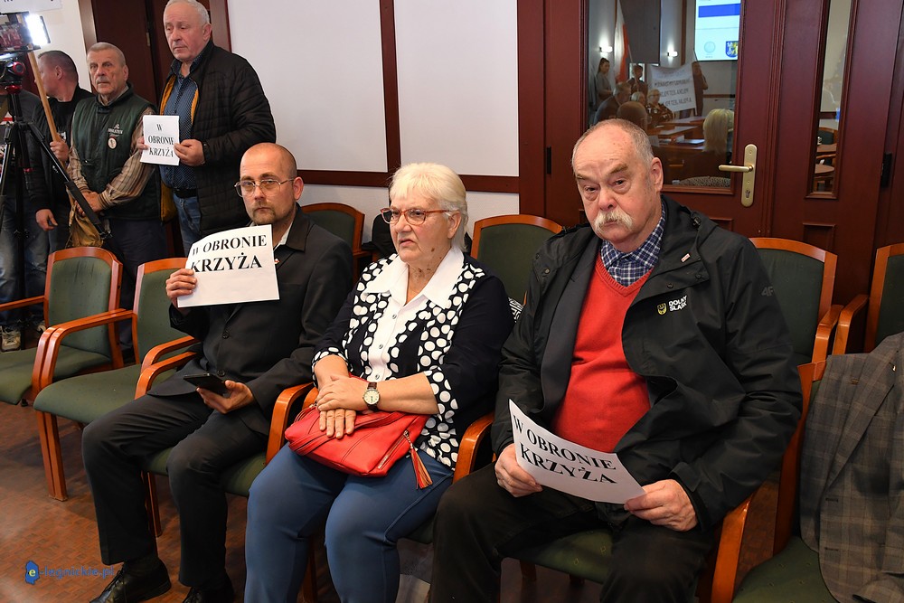 Na sesji radny Adam Wierzbicki (PiS) przyszedł z ogromnym krucyfiksem i ustawił go na stole prezydialnym. Zapowiedział, że będzie go przynosił na każdą sesję, co obrońcy krzyża powitali oklaskami. - To nasz protest przeciwko arbitralnej decyzji prezydenta Macieja Kupaja, który usunął z sali obrad krzyż powieszony tam przed ponad 20 laty.
