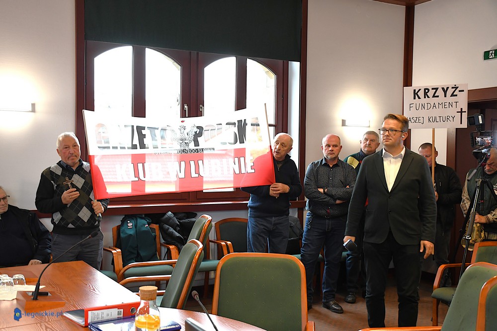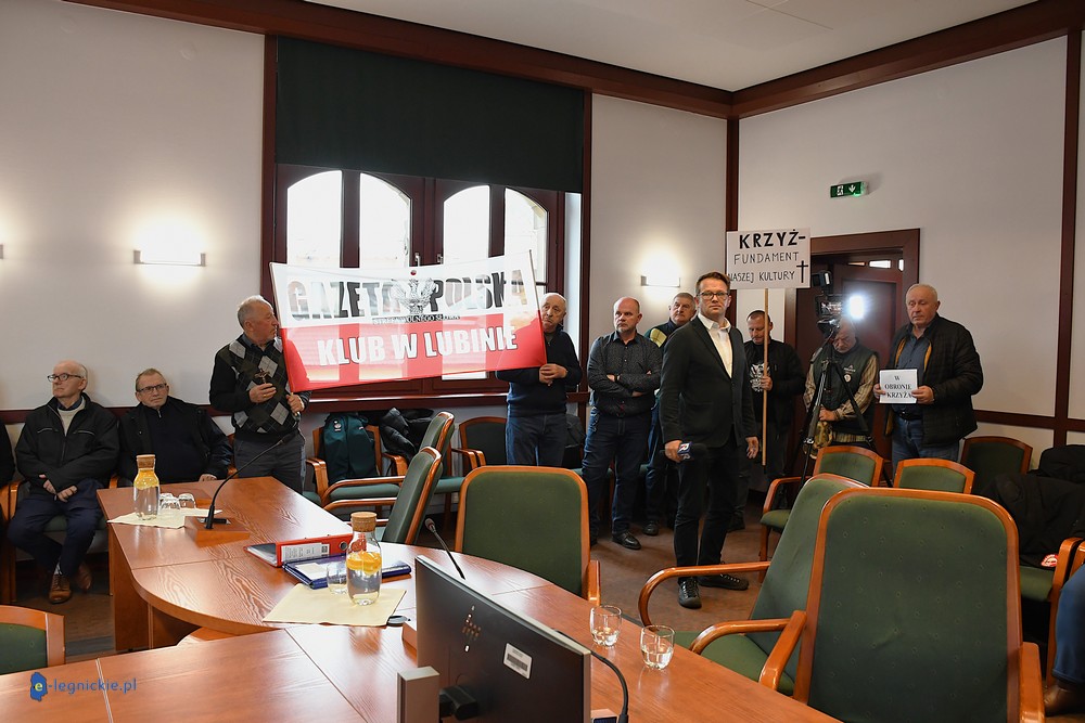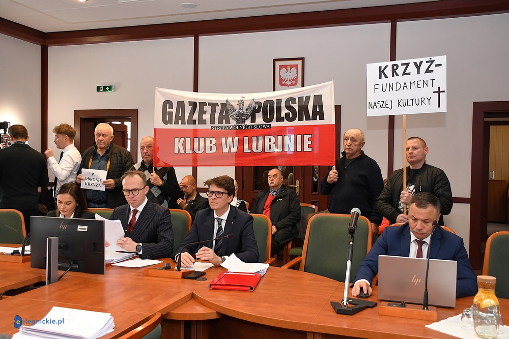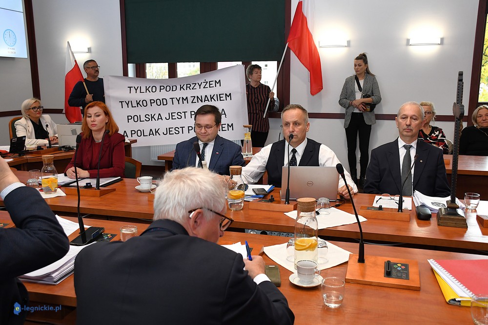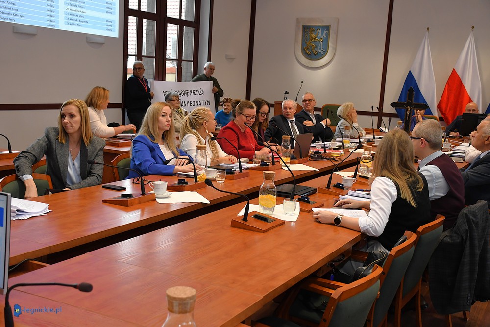 LEGNICA. "Hańba!", "Gdzie jest krzyż?!", "Wróciła Mała Moskwa", "Jesteście gorsi od komunistów!"- grzmieli mieszkańcy na sesji rady miejskiej Legnicy. Kilkadziesiąt osób pojawiło się dziś na sali obrad, by stanąć w obronie krzyża, który zniknął z sali latem tego roku. Przez około dwie godziny trwały przepychanki pomiędzy Prawem i Sprawiedliwością, a większością rady w sprawie dopuszczenia ich do głosu. Dla uspokojenia nastrojów prowadzący obrady wiceprzewodniczący Tomasz Tamioła kilkukrotnie ogłaszał przerwę, a samo ustalenie porządku obrad zajęło dwie godziny.