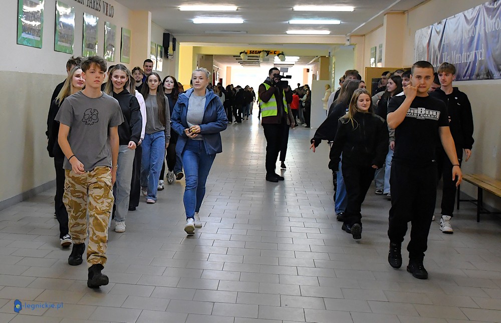 Doświadczeniem z podobnych działań podzielił się także dyrektor Zespołu Szkół Samochodowych w Legnicy Grzegorz GARGAŚ, który bacznie przyglądał się wzorcowej organizacji ewakuacji w VII LO:
