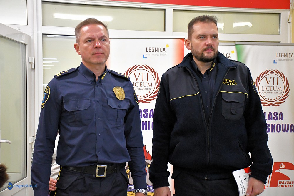LEGNICA. W godzinach porannych na terenie VII Liceum Ogólnokształcącego w Legnicy odbyły się kompleksowe ćwiczenia z obrony cywilnej, zorganizowane przez Wydział Bezpieczeństwa i Zarządzania Kryzysowego Urzędu Miasta Legnicy. Wzięły w nich udział służby mundurowe – straż pożarna, policja, straż miejska oraz pogotowie ratunkowe – a także dyrektorzy legnickich szkół podstawowych i ponadpodstawowych, którzy obserwowali przebieg działań. Celem ćwiczeń było doskonalenie procedur ewakuacji i reagowania w sytuacjach kryzysowych w placówkach oświatowych.