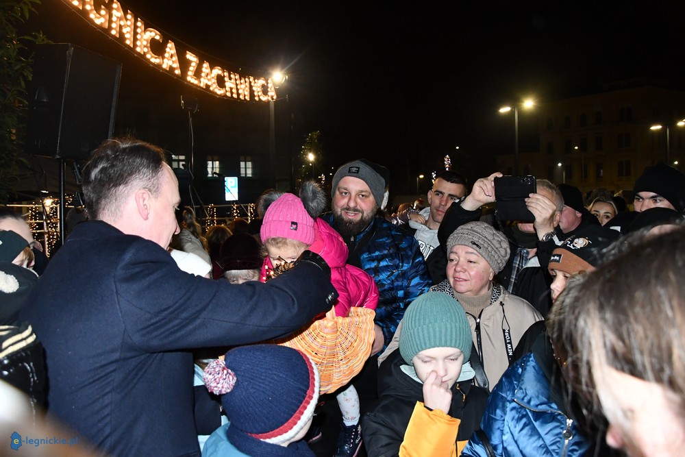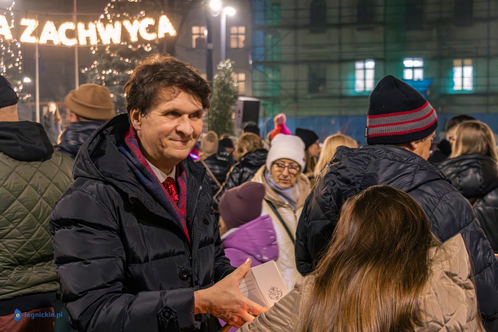 Podczas inauguracji świateł, na scenie pod napisem "Legnica zachwyca" odliczanie rozpoczął prezydent miasta Maciej Kupaj. Po chwili wszystkie elementy już świeciły: bombka, ramka, karuzela i inne ozdoby, tworząc magiczną, świąteczną atmosferę.