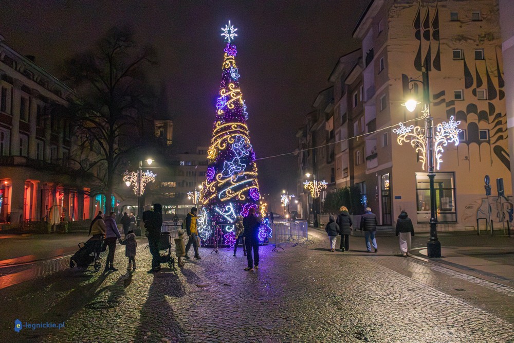 LEGNICA. Miasto rozbłysnęło już świątecznym blaskiem. Na placu Słowiańskim stanęła piękna choinka, a świąteczne dekoracje pojawiły się także na rynku. Nie zabrakło tradycyjnych elementów, które od lat cieszą oko legniczan.