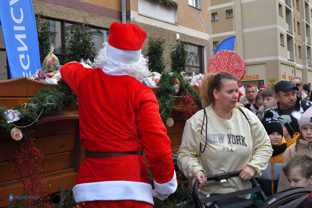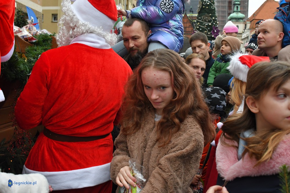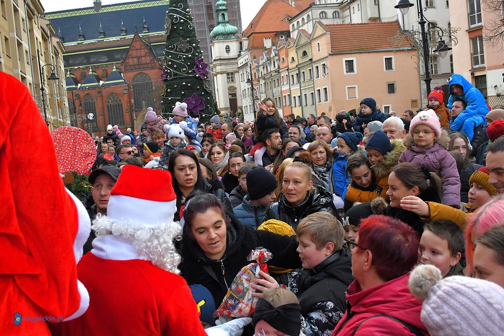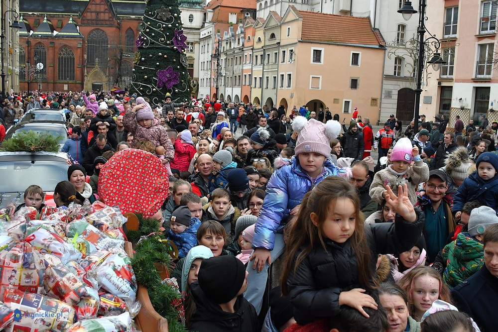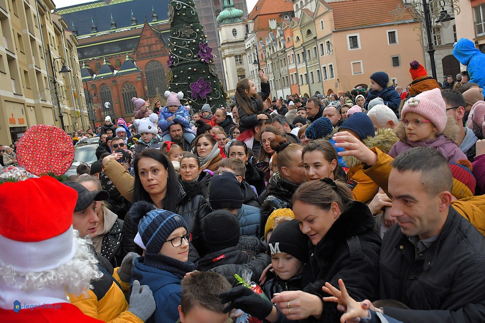 Już przed godziną 13 na legnickim Rynku czekał tłum dzieci w różnym wieku, którym towarzyszyli rodzice i dziadkowie. Na widok jadących Mikołajów najmłodsi reagowali zachwytem, a każdy z nich wracał do domu z upominkiem.