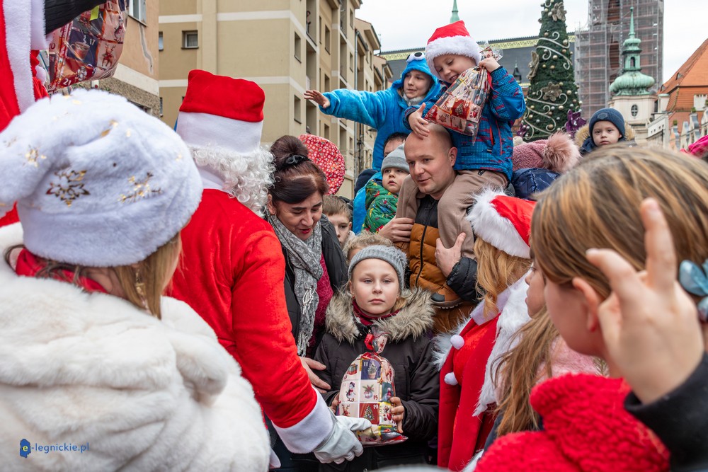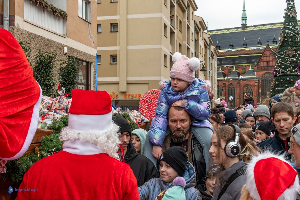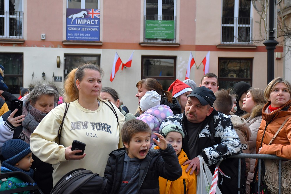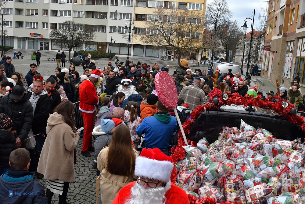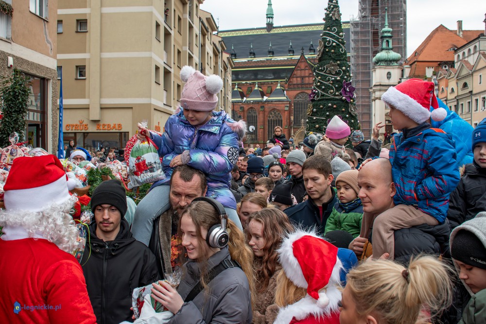 Już przed godziną 13 na legnickim Rynku czekał tłum dzieci w różnym wieku, którym towarzyszyli rodzice i dziadkowie. Na widok jadących Mikołajów najmłodsi reagowali zachwytem, a każdy z nich wracał do domu z upominkiem.