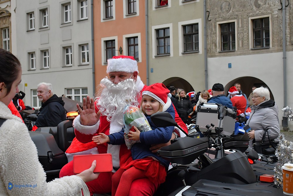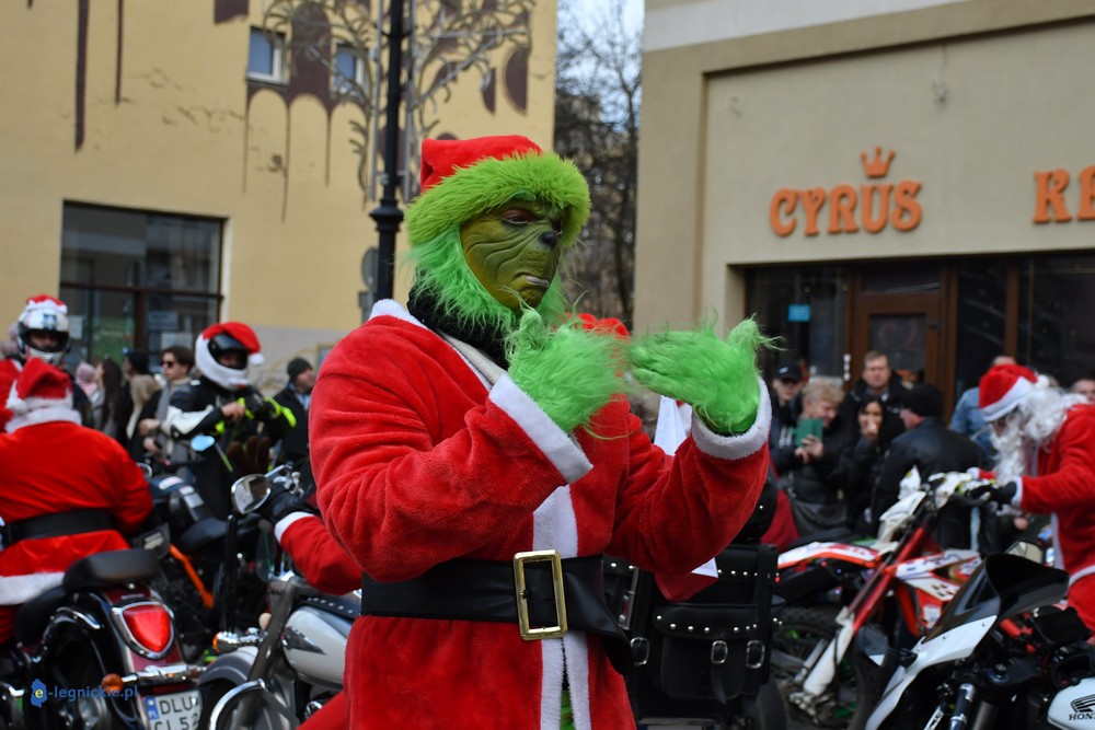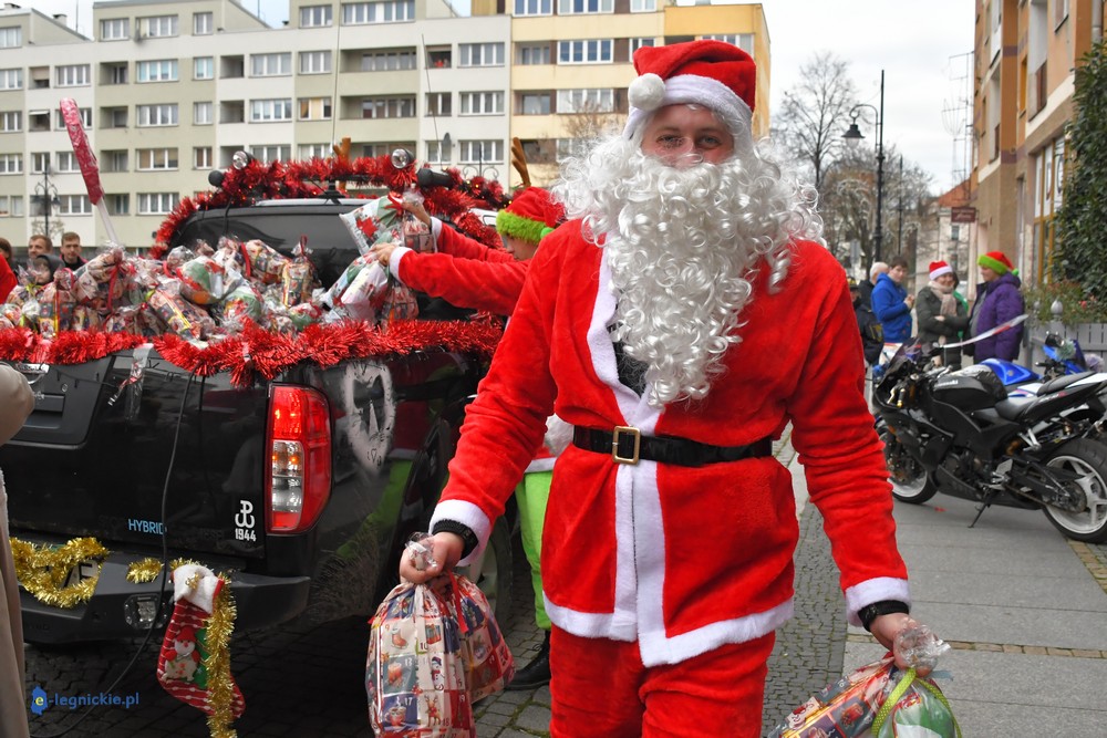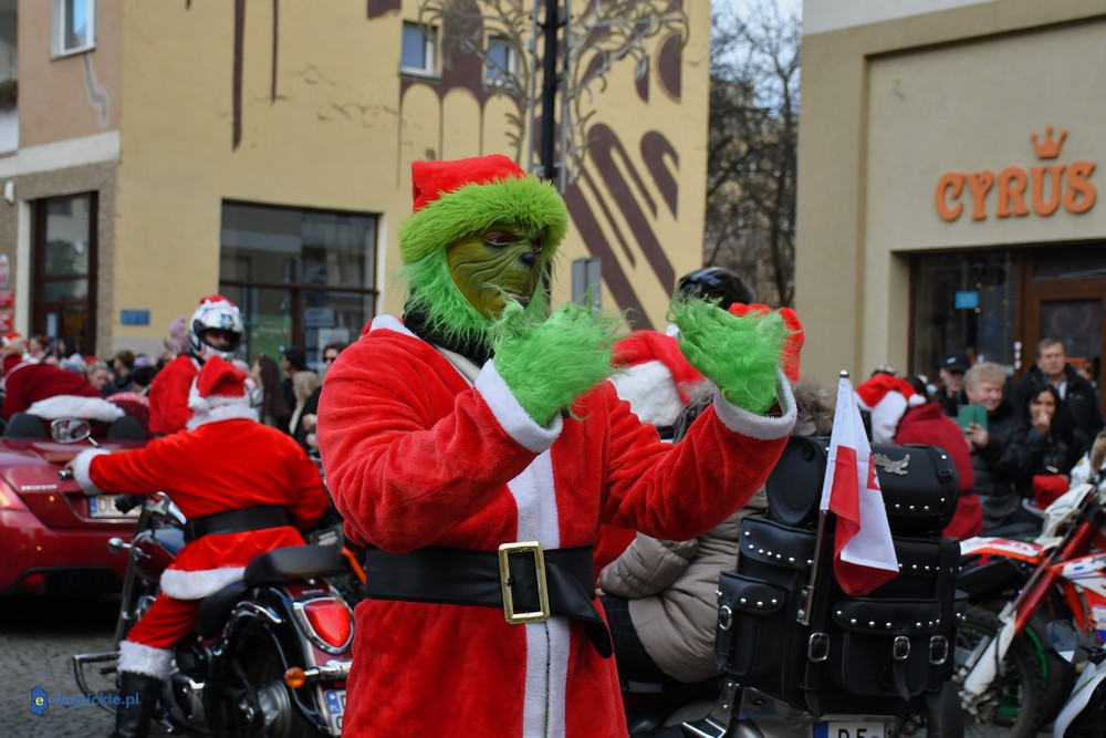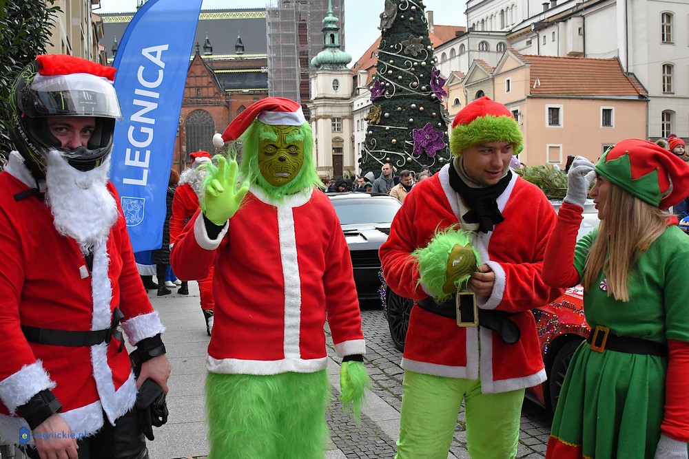 LEGNICA. Na legnicki Rynek dokładnie o godzinie 13 wjechał barwny konwój Św. Mikołaja, złożony z motoryzowanych Mikołajów, elfów oraz kilku zielonych Grinchów. To już szósta edycja cyklicznej imprezy organizowanej przez pasjonatów dwóch kółek – motocyklistów z powiatu legnickiego. Motomikołaje legnickim dzieciom rozdali aż 1200 świątecznych paczek.
