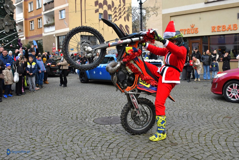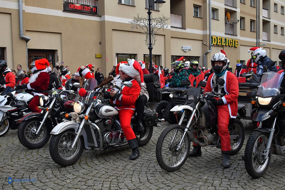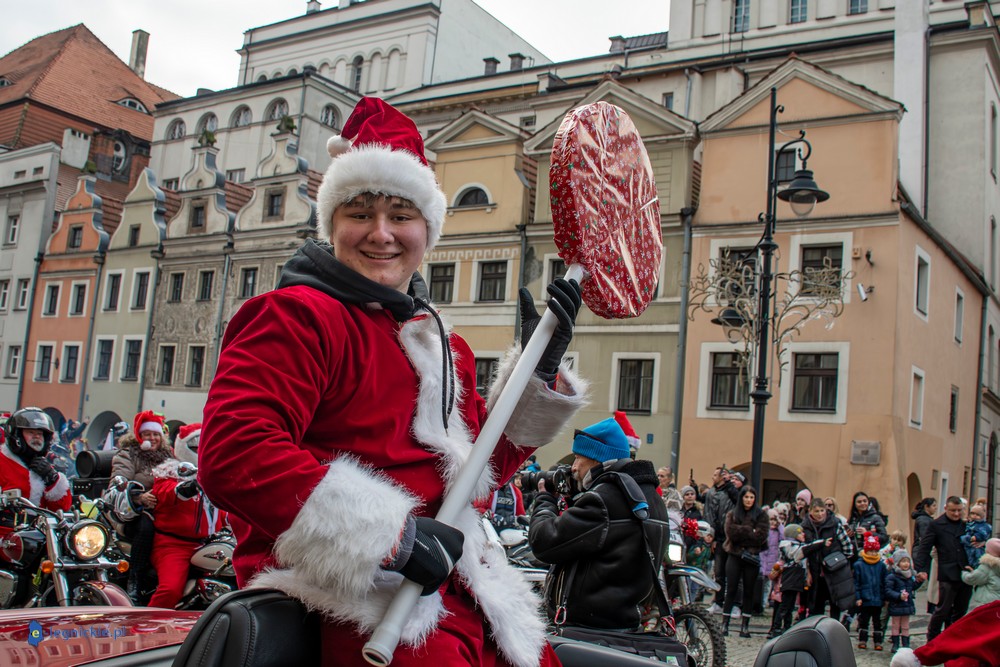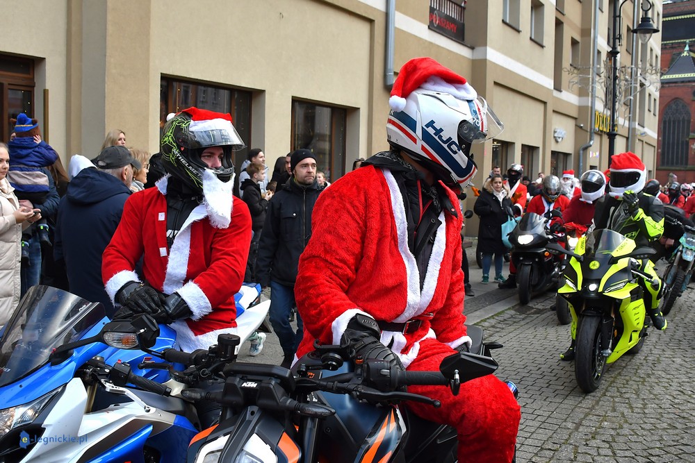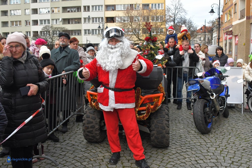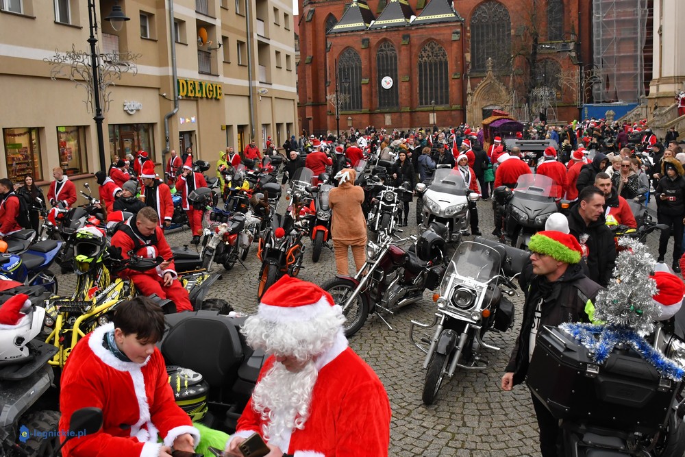 LEGNICA. Na legnicki Rynek dokładnie o godzinie 13 wjechał barwny konwój Św. Mikołaja, złożony z motoryzowanych Mikołajów, elfów oraz kilku zielonych Grinchów. To już szósta edycja cyklicznej imprezy organizowanej przez pasjonatów dwóch kółek – motocyklistów z powiatu legnickiego. Motomikołaje legnickim dzieciom rozdali aż 1200 świątecznych paczek.