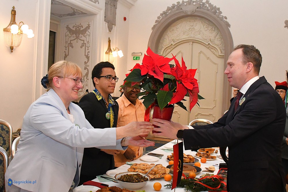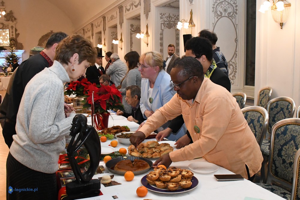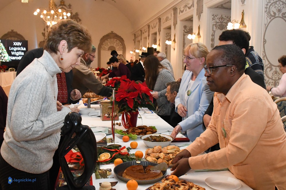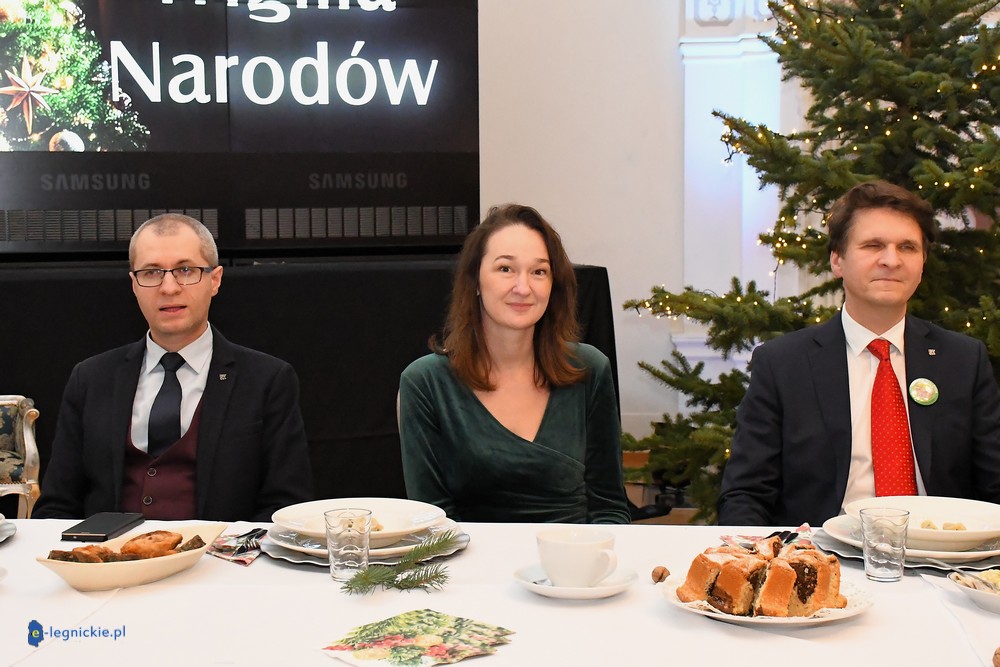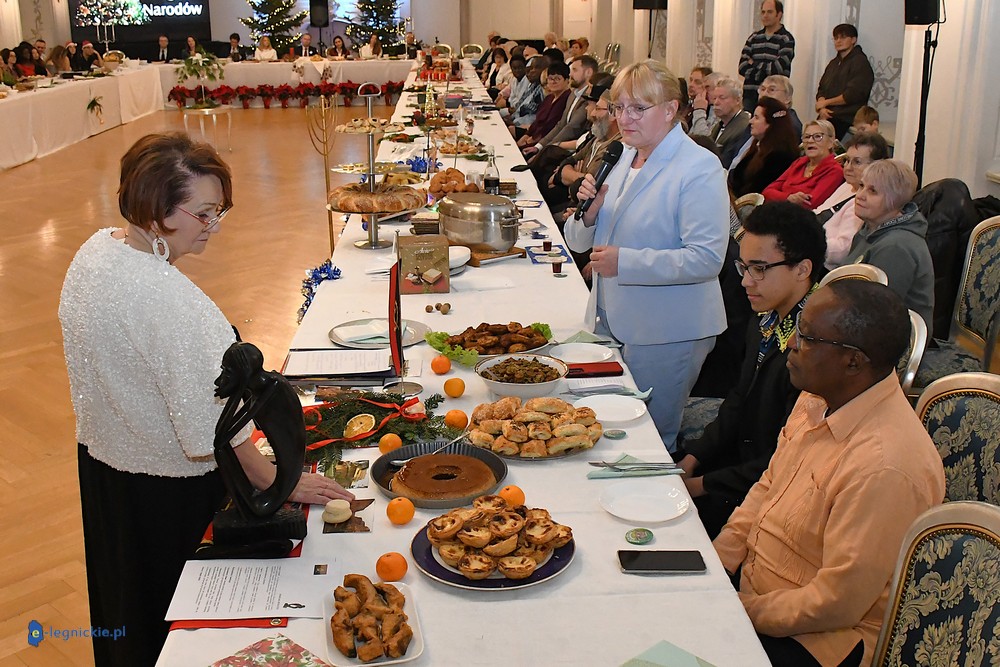LEGNICA.. 24. raz w Legnicy odbyła się Wigilia Narodów. To tradycyjne już wydarzenie cieszy się co roku dużym zainteresowaniem przedstawicieli różnych krajów mieszkających na co dzień w Legnicy i okolicach. Uroczystą wigilijną kolację w Sali Królewskiej organizowały tradycyjnie panie ze Stowarzyszenia Kobiety Europy na czele z Elżbietą Chucholską. Gośćmi szczególnymi Wigilii Narodów byli: prezydent Legnicy Maciej Kupaj, biskup legnicki pomocniczy Piotr Wawrzynek, zastępcy prezydenta Aleksandra Krzeszewska i Jacek Baszczyk, przewodnicząca Rady Miejskiej Legnicy Karolina Jaczewska-Szymkowiak , radni .