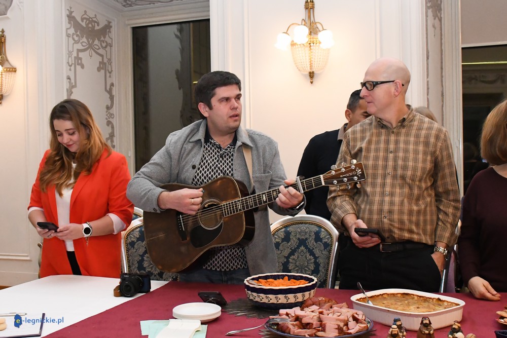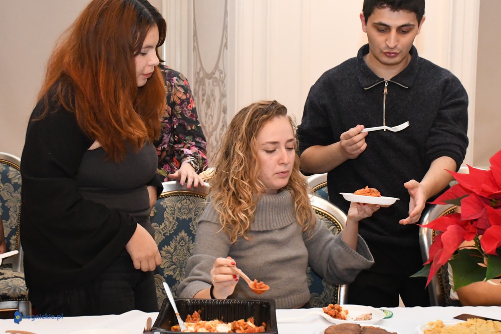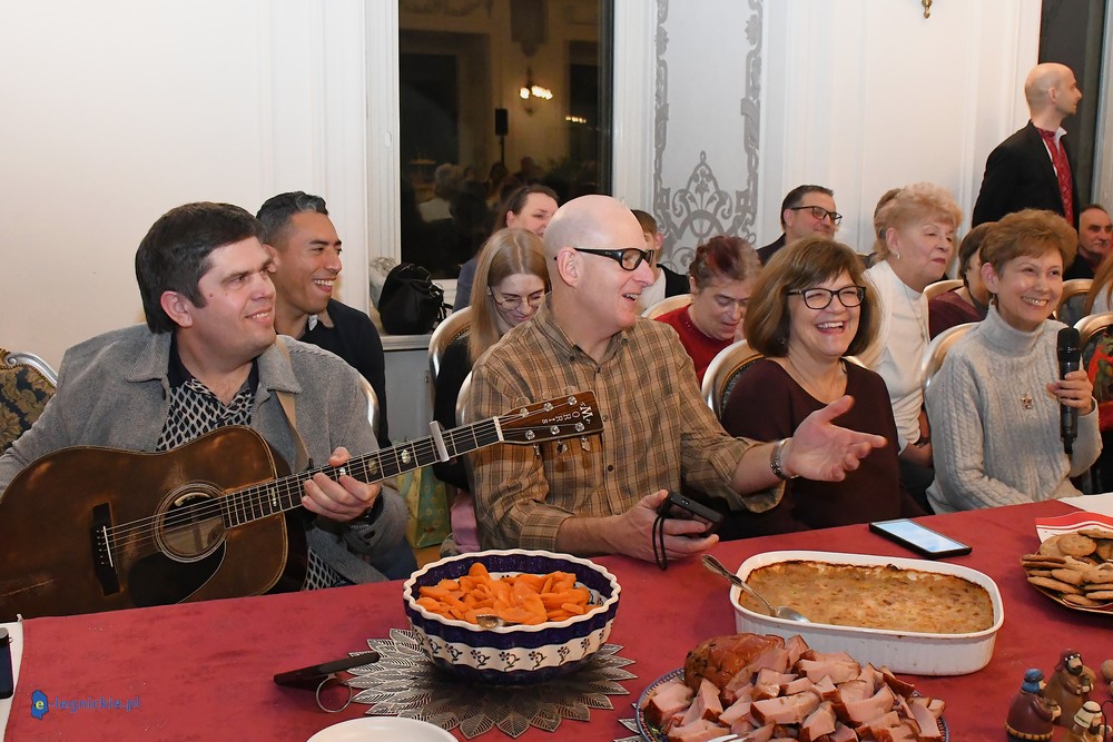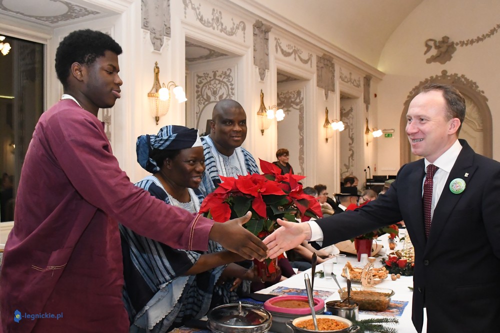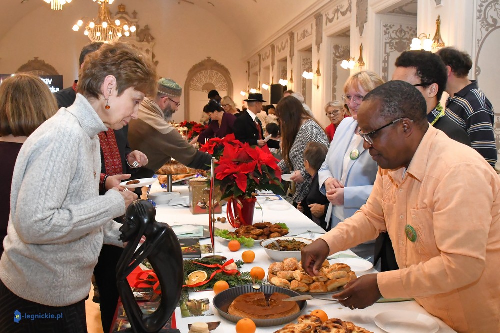 Następnie, zgodnie z polską tradycją, uczestnicy podzielili się opłatkiem, składając sobie życzenia. Po części oficjalnej wszyscy wspólnie zasiedli do wigilijnej wieczerzy, próbując potraw przygotowanych przez poszczególnych uczestników. Spotkanie było nie tylko okazją do świętowania, ale także do integracji i budowania wzajemnego zrozumienia w wielokulturowej Legnicy.