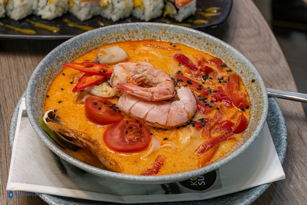– Zupka tom yum to nowość, ale taka, która trochę powraca po czasie, bo wielu naszych gości pamięta jeszcze zupkę kokosową. Teraz wróciła w nieco innej formie. Są krewetki, świeże warzywa, kolendra i jest gotowana na mleczku kokosowym, więc to jednocześnie smak odświeżający i lekko ostry – mówi Dawid Belka.