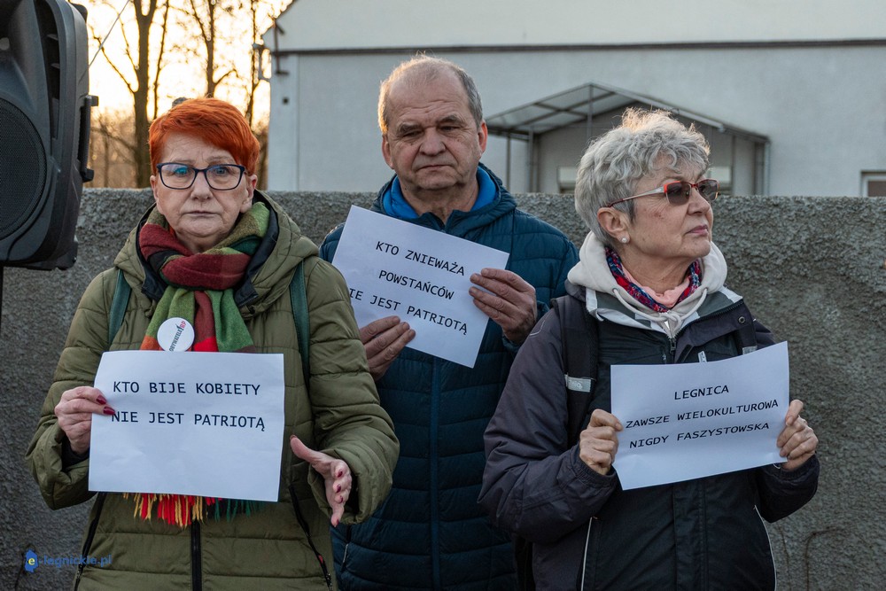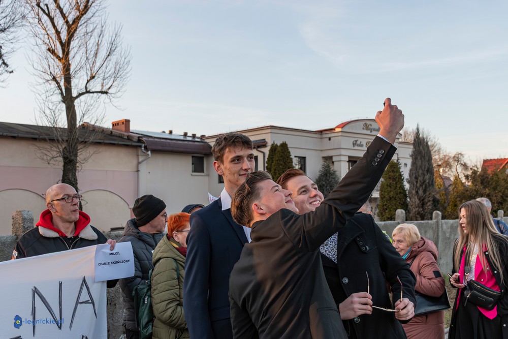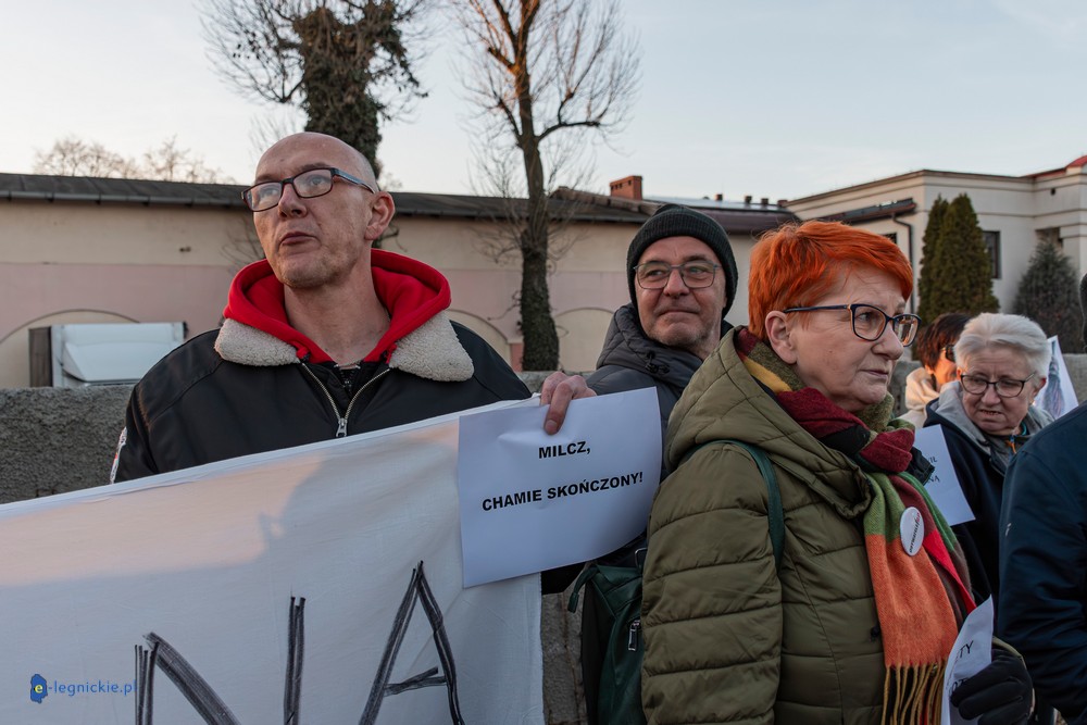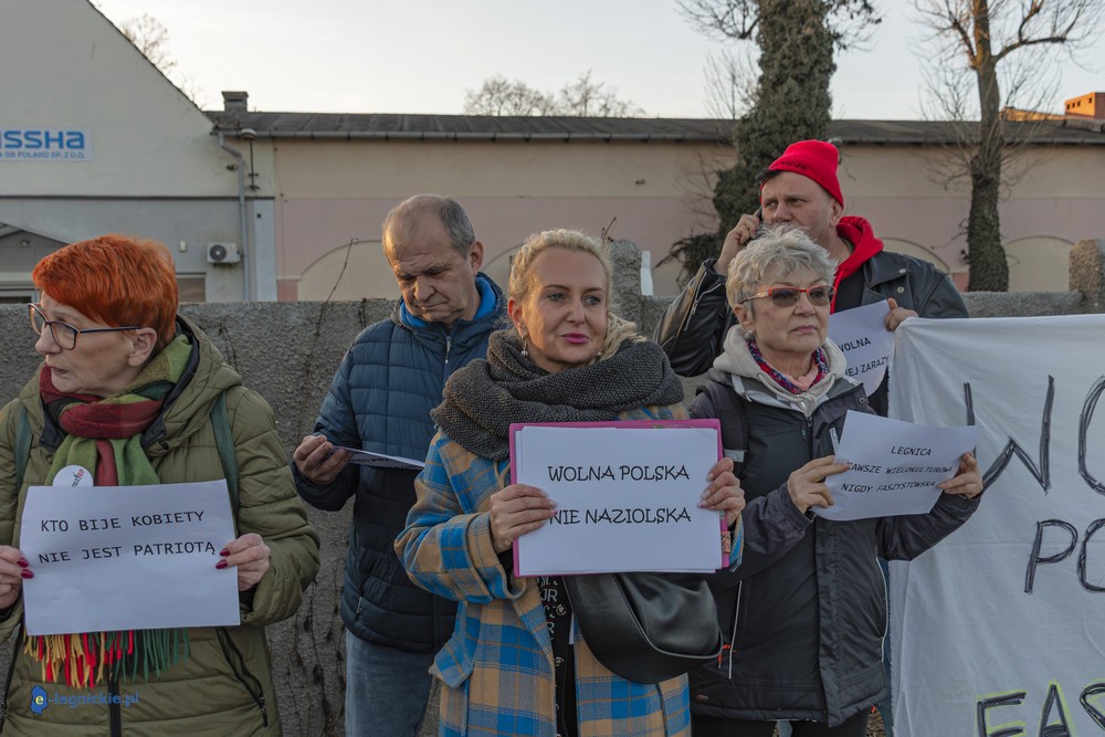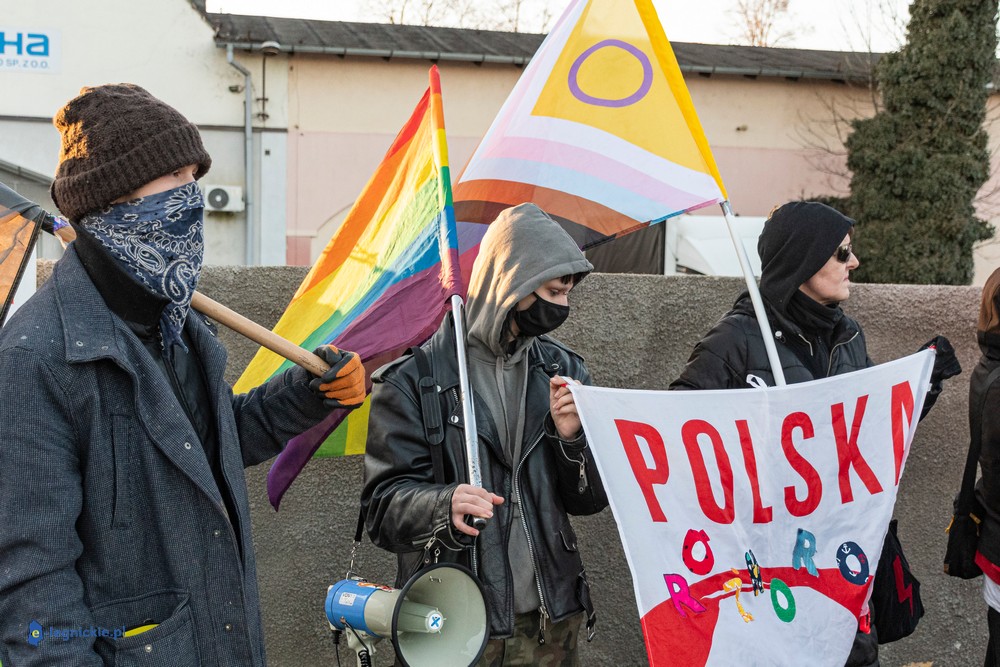 Na miejscu pikiety było wielu policjantów dowodzonych osobiście przez Zastępca Komendanta Miejskiego Policji w Legnicy nadkomisarza Kamila Piaseckiego. I trzeba przyznać, że profesjonalna postawa właśnie policji zarówno służb mundurowanych jak i licznych policjantów operacyjnych po cywilnemu, zapobiegała narastaniu emocji i eskalacji nienawiści. Z grupy pikietujących wylegitymowano i spisano dwie osoby: jeden z protestujących był wbrew ustawie o zgromadzeniach zamaskowany, a drugi - co jest niepokojące i godne potępienia - kierował groźby karalne pod adresem Joanny Śliwińskiej-Łokaj.