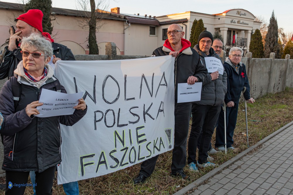 Pikietujący - w tym radne legnickiej Rady Miejskiej Katarzyna Odrowską, Radosława Janowską-Lascar i Bogusława Wszelaka - mieli ze sobą transparenty z hasłami jak "Precz z faszyzmem". Poza artykułowaniem swojego sprzeciwu przeciwko wizycie polityka uznawanego przez protestujących za faszystę, niestety ponownie wylano kubły hejtowskich "pomyj" na Joannę Śliwińska-Łokaj, radną i przede wszystkich właścicielkę Magnolii. W pewnym momencie pikieta stała się groteskowa, bo można było odnieść wrażenie, że jest  wymierzona nie w Bąkiewicza lecz w Śliwińską-Łokaj…