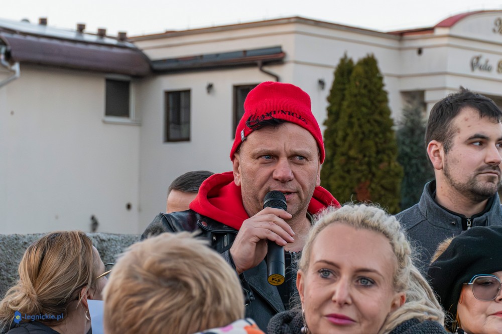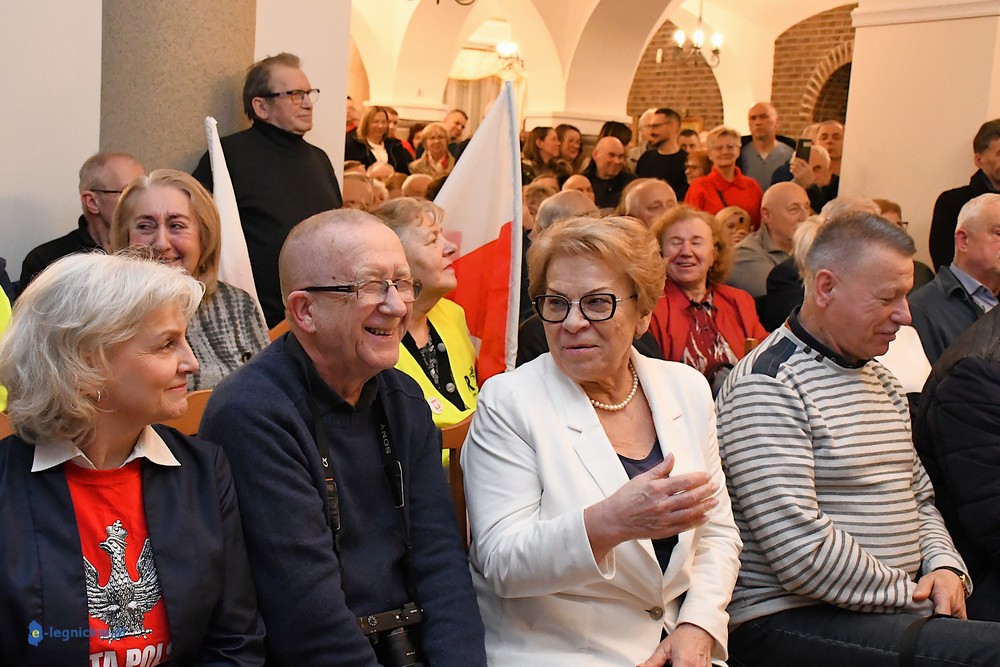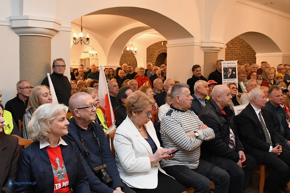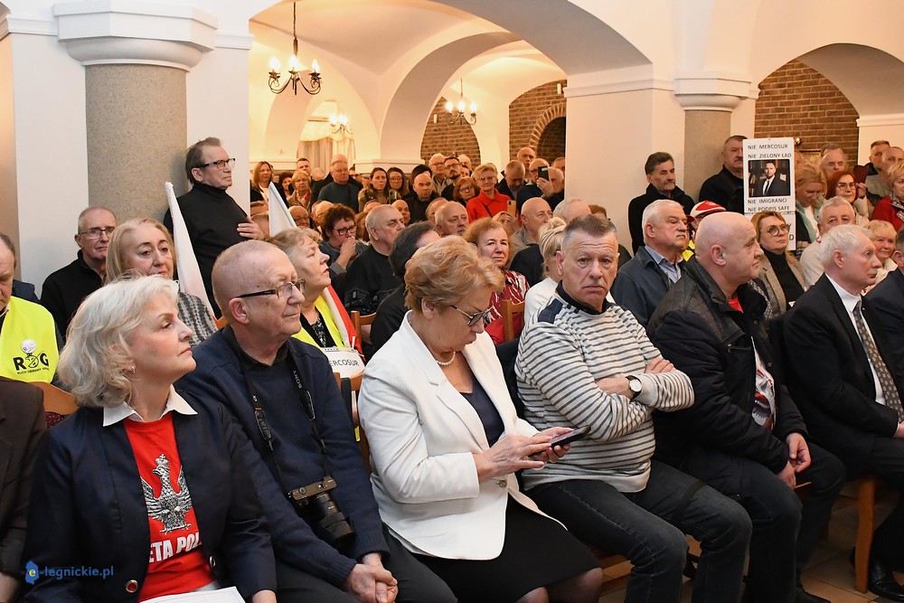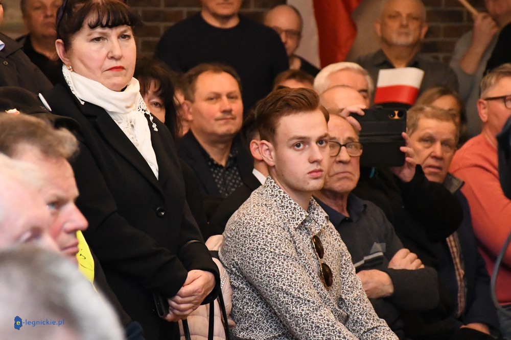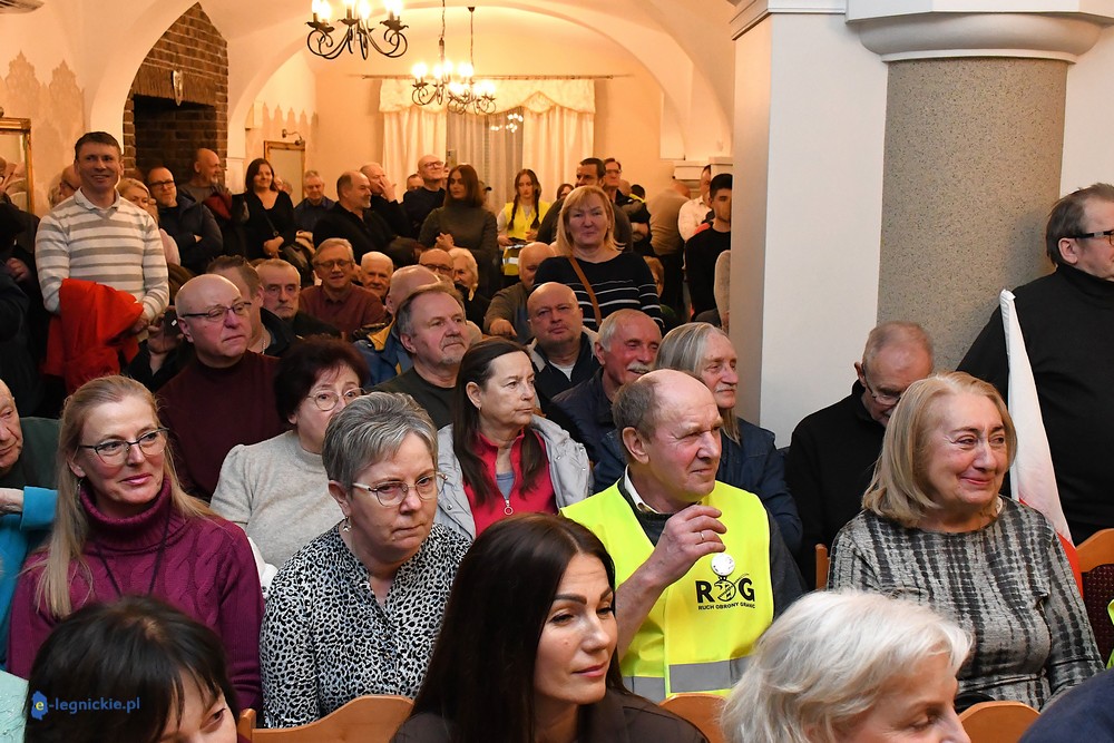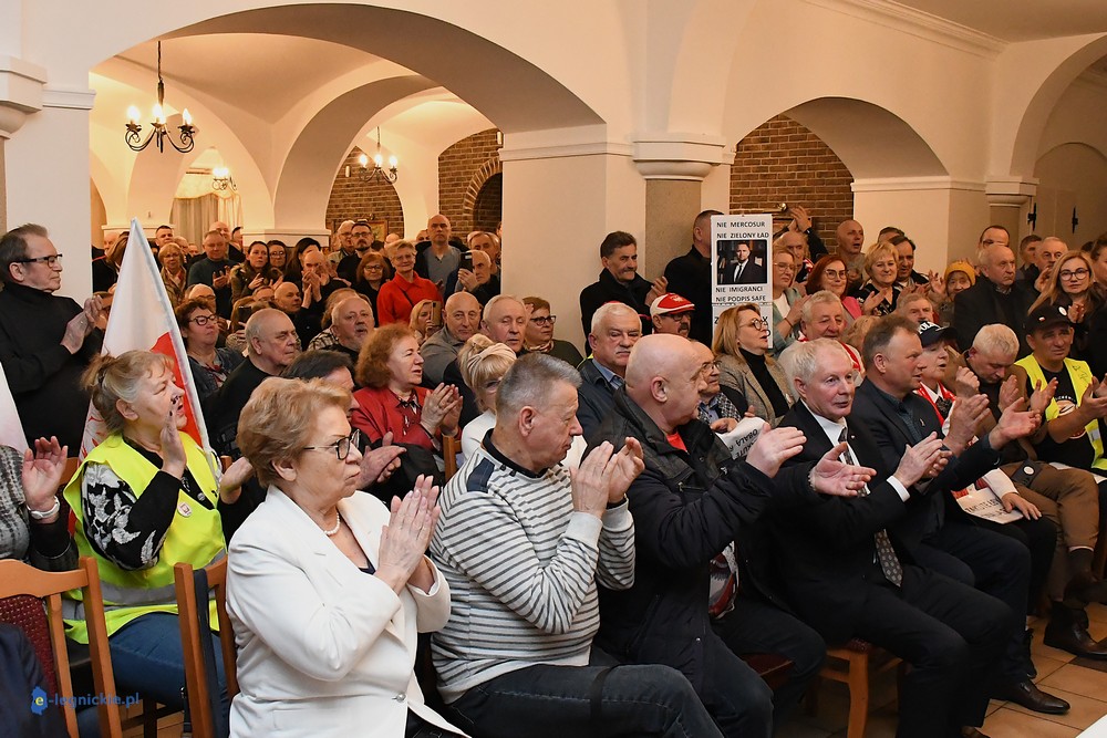 Tymczasem Sala Magnolia wypełniła się po brzegi. Byli prawicowi radni miejscy, politycy spoza Legnicy, byli parlamentarzyści i ponad 600 osób. Tłok, ścisk, duchota trudna do wytrzymania... Zapytaliśmy uczestników spotkania, co sądzą o proteście na zewnątrz lokalu?